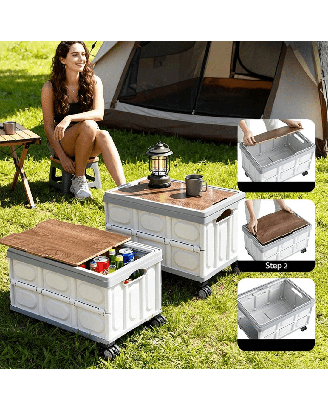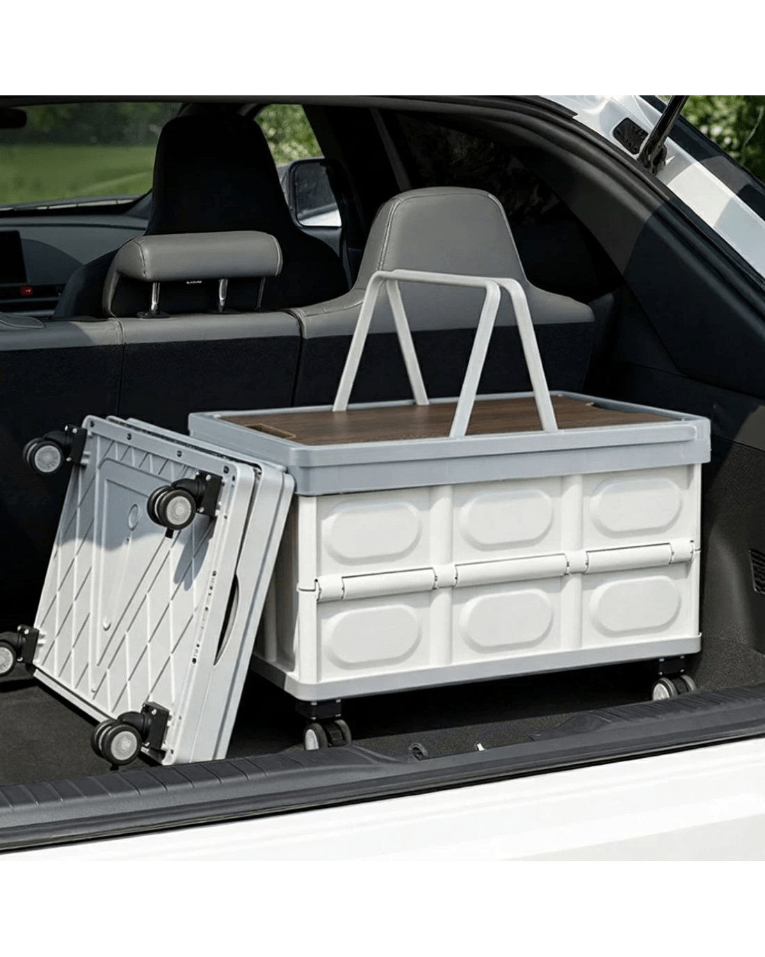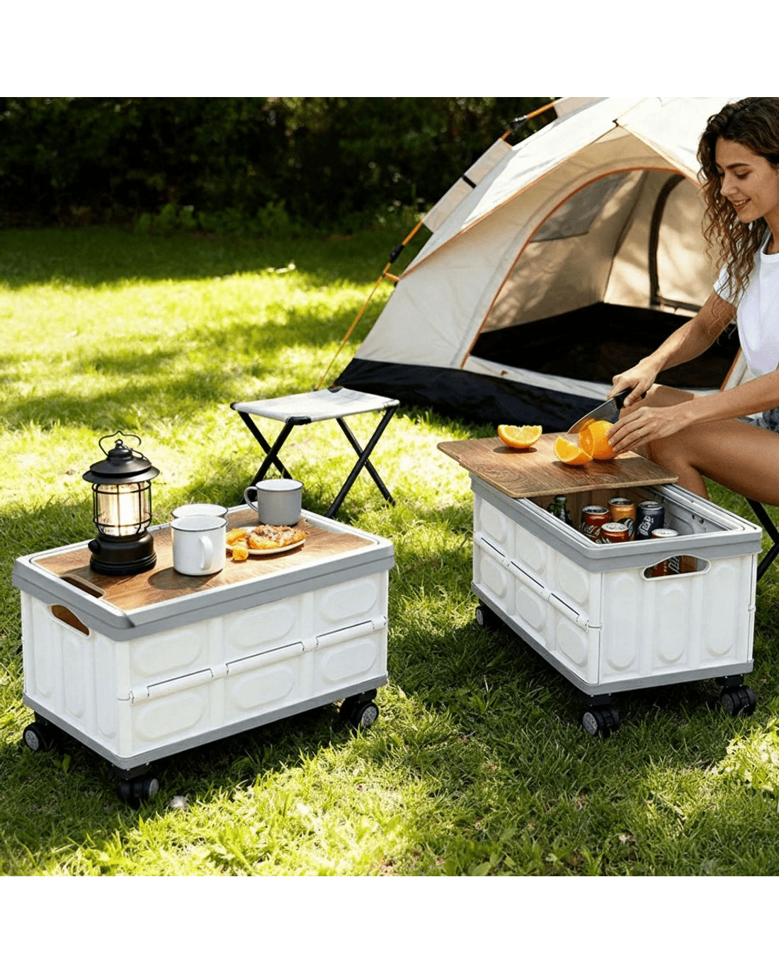 Sold by Aisle SixGardeon Collapsible Outdoor Storage Box 54L Stackable Folding Camping Organizer Wheels Plywood Lid - Multi