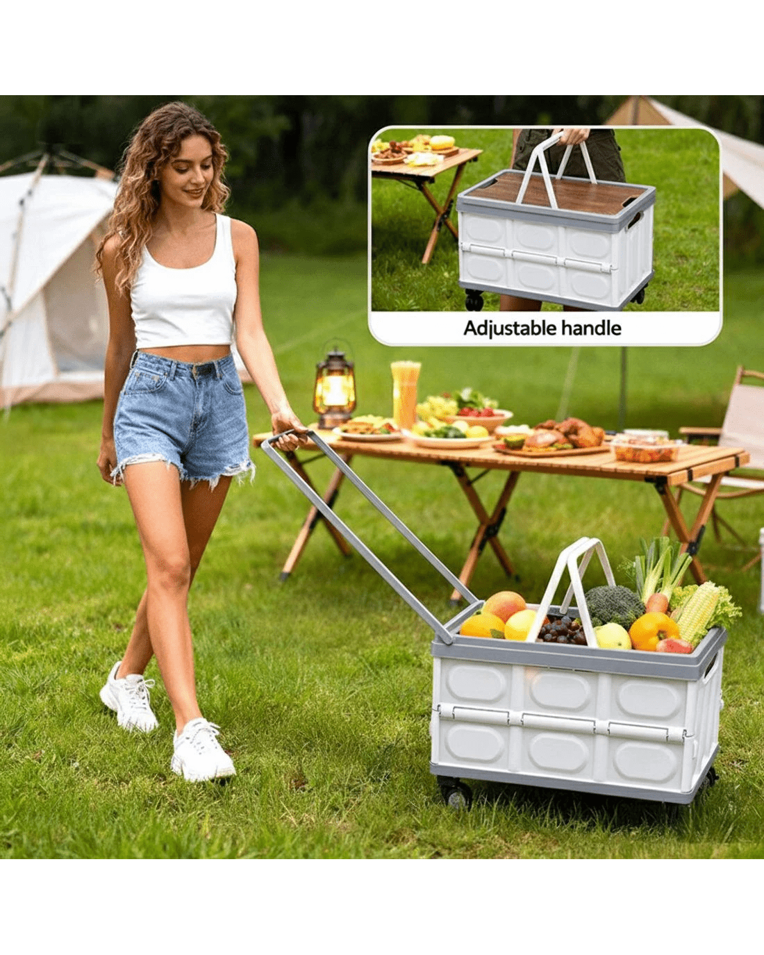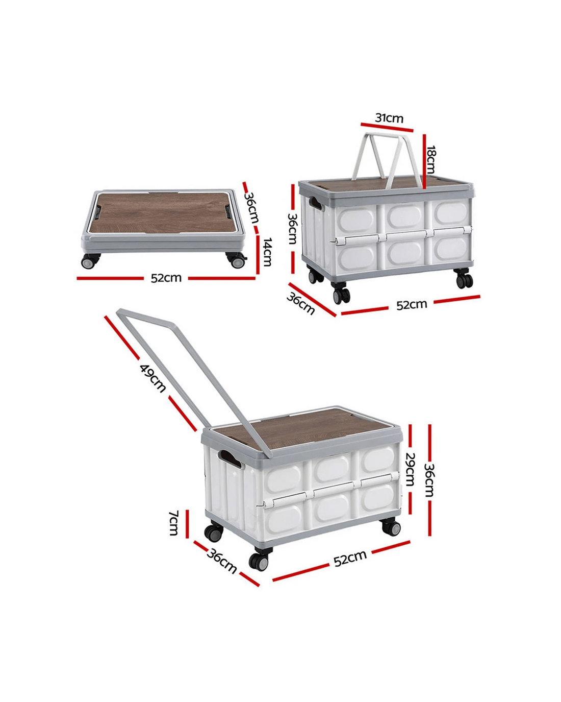 The Gardeon Portable Folding Storage Bin is your go-to for adventures and home organization. Its 54L capacity easily holds gear, clothes, and supplies. Built with strong PP material and a plywood lid, it's durable enough to serve as a table or seat. New upgrades include 4 smooth-rolling wheels and an adjustable carry handle for easy transport. Folds flat to save space. Ideal for camping, trips, parties, and daily use.