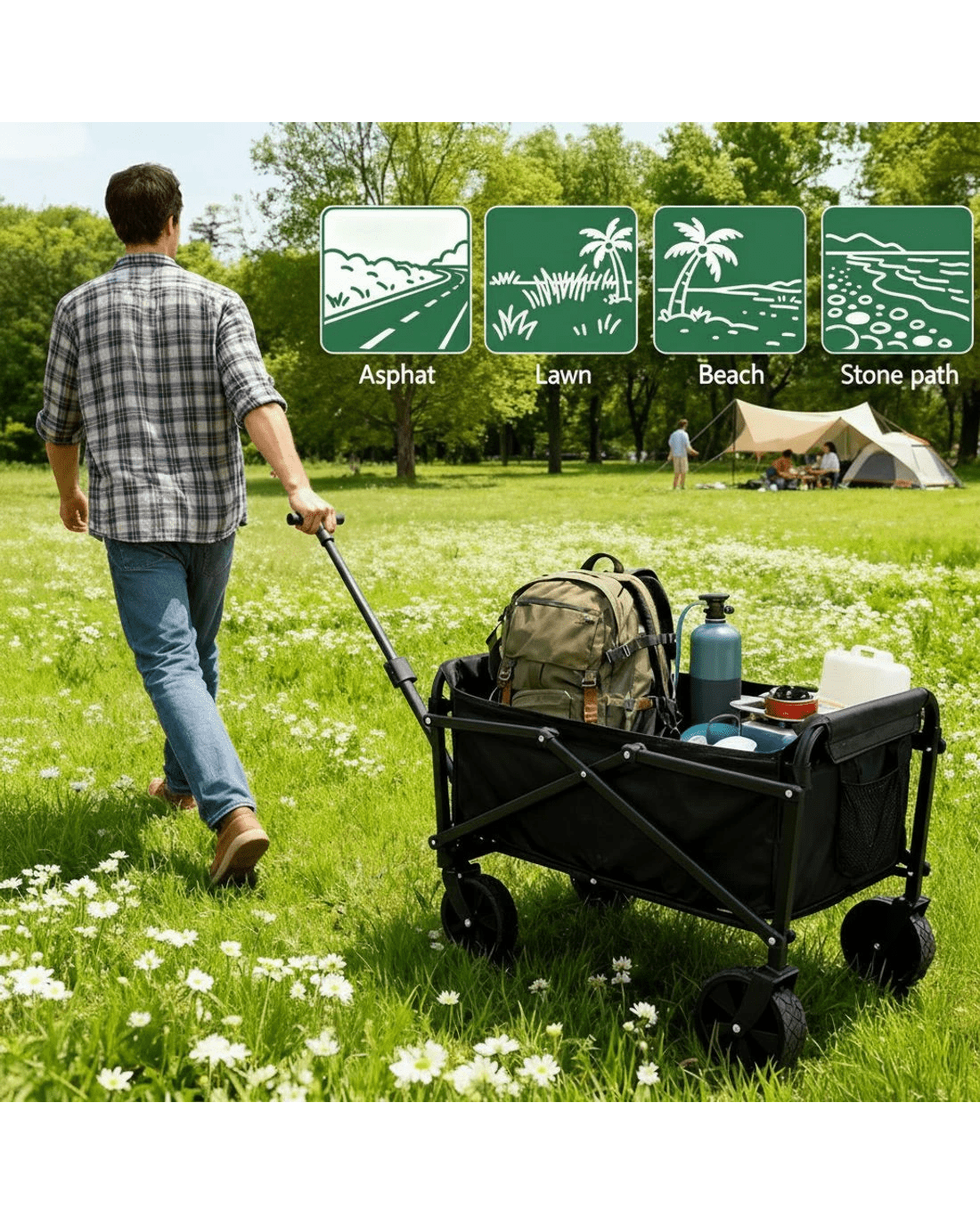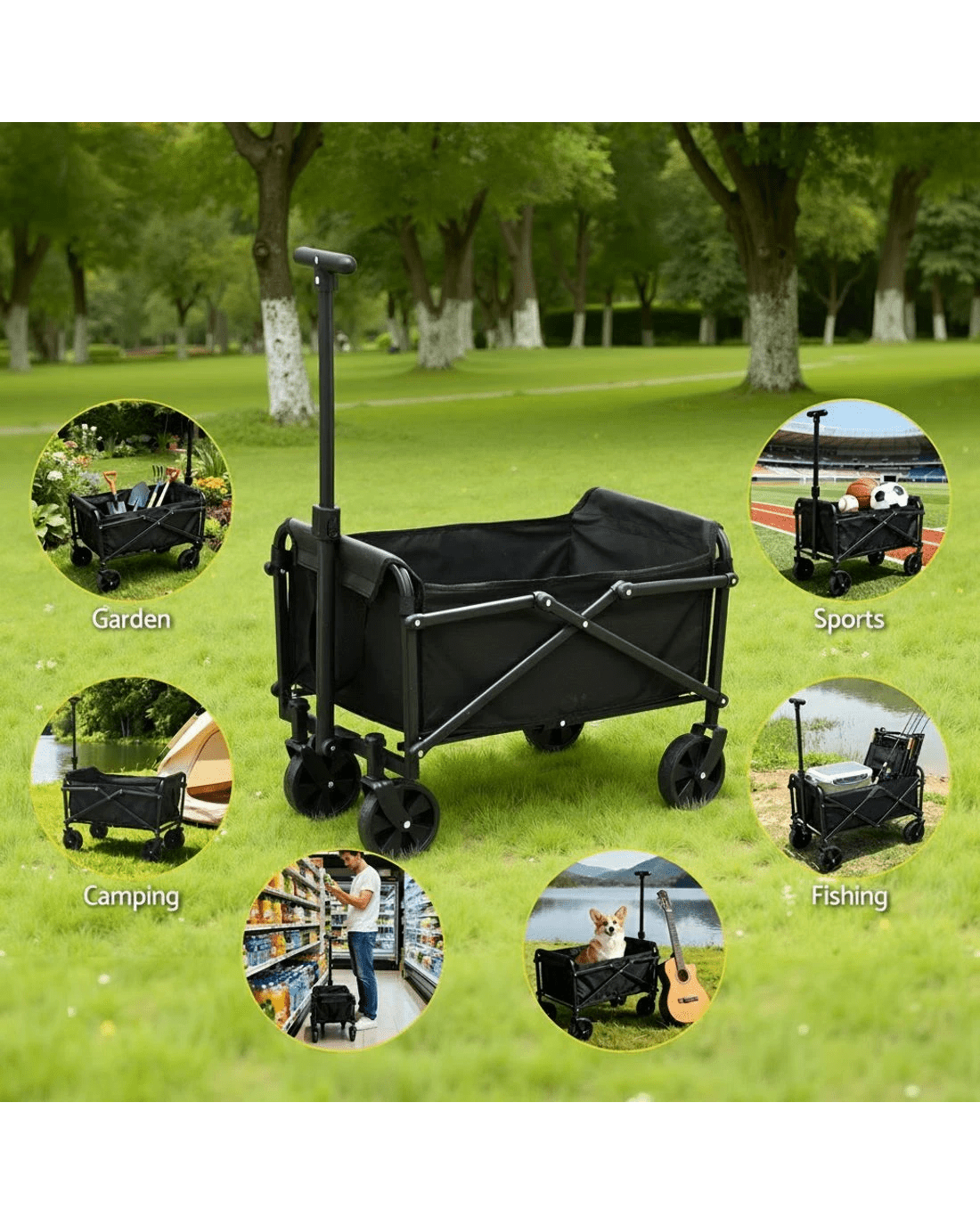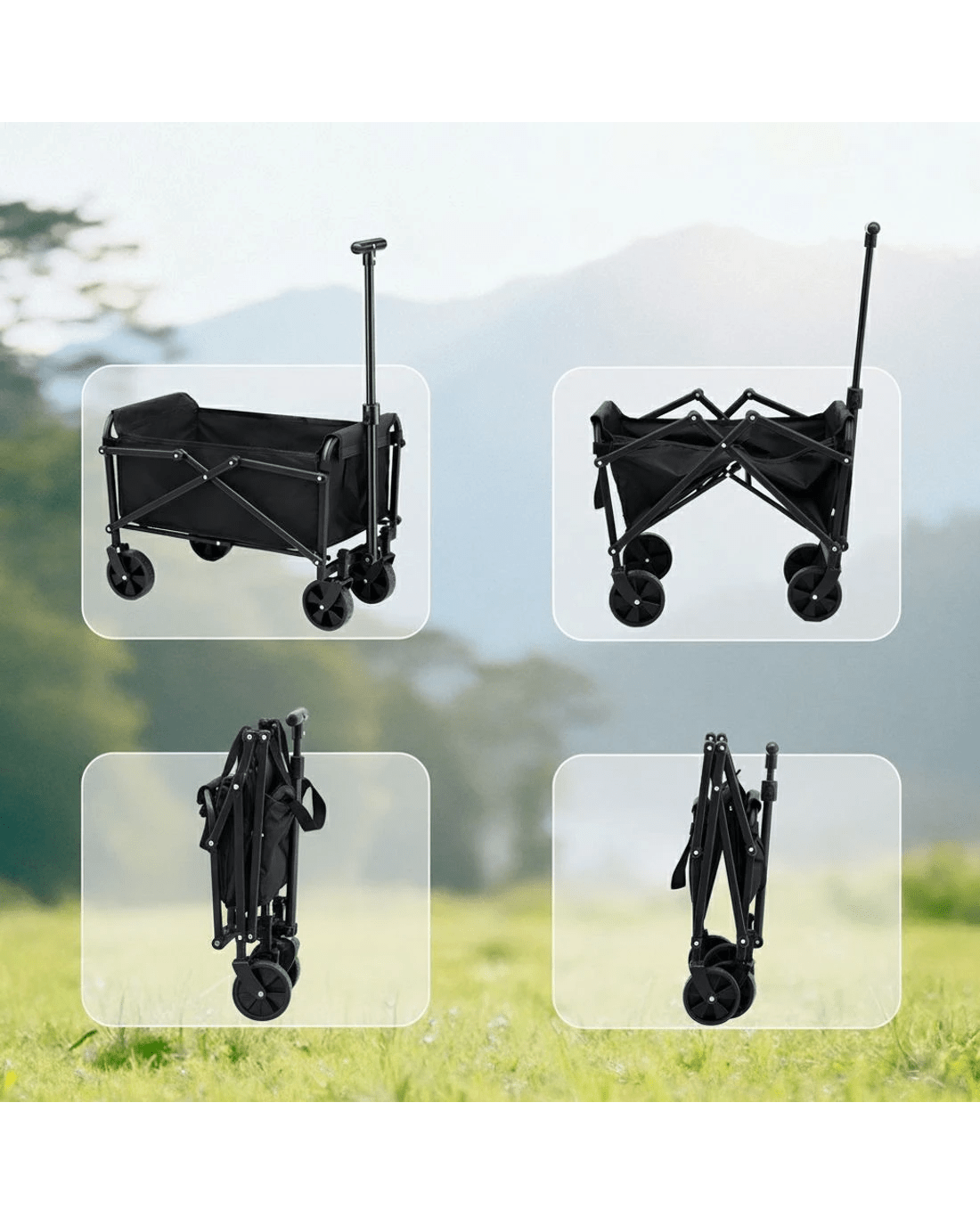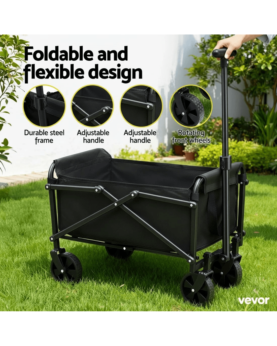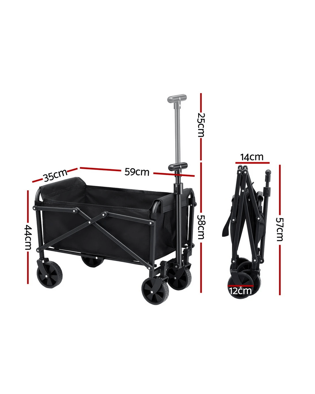 Gardeon Garden Cart Folding Trolley Camping Wagon Barrow Outdoor Beach - Black