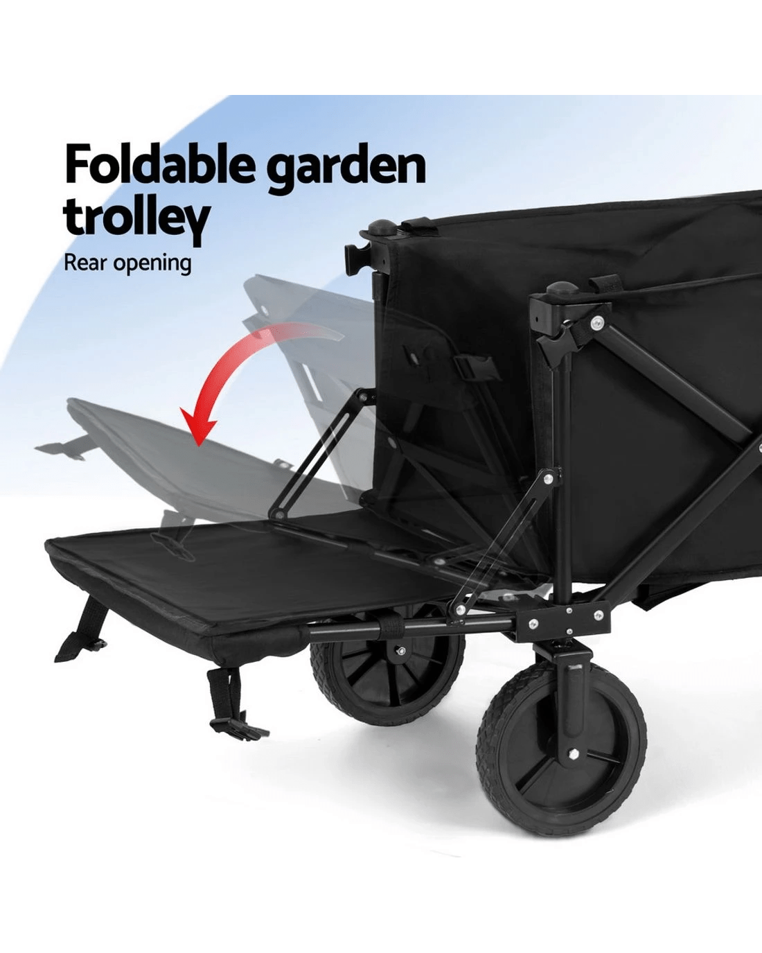 Introducing our versatile Gardeon garden cart: a multipurpose trolley for gardening, shopping, and outdoor adventures. With a sturdy steel frame, 360° rotating wheels, adjustable handle, and spacious interior, it's perfect for all your needs.