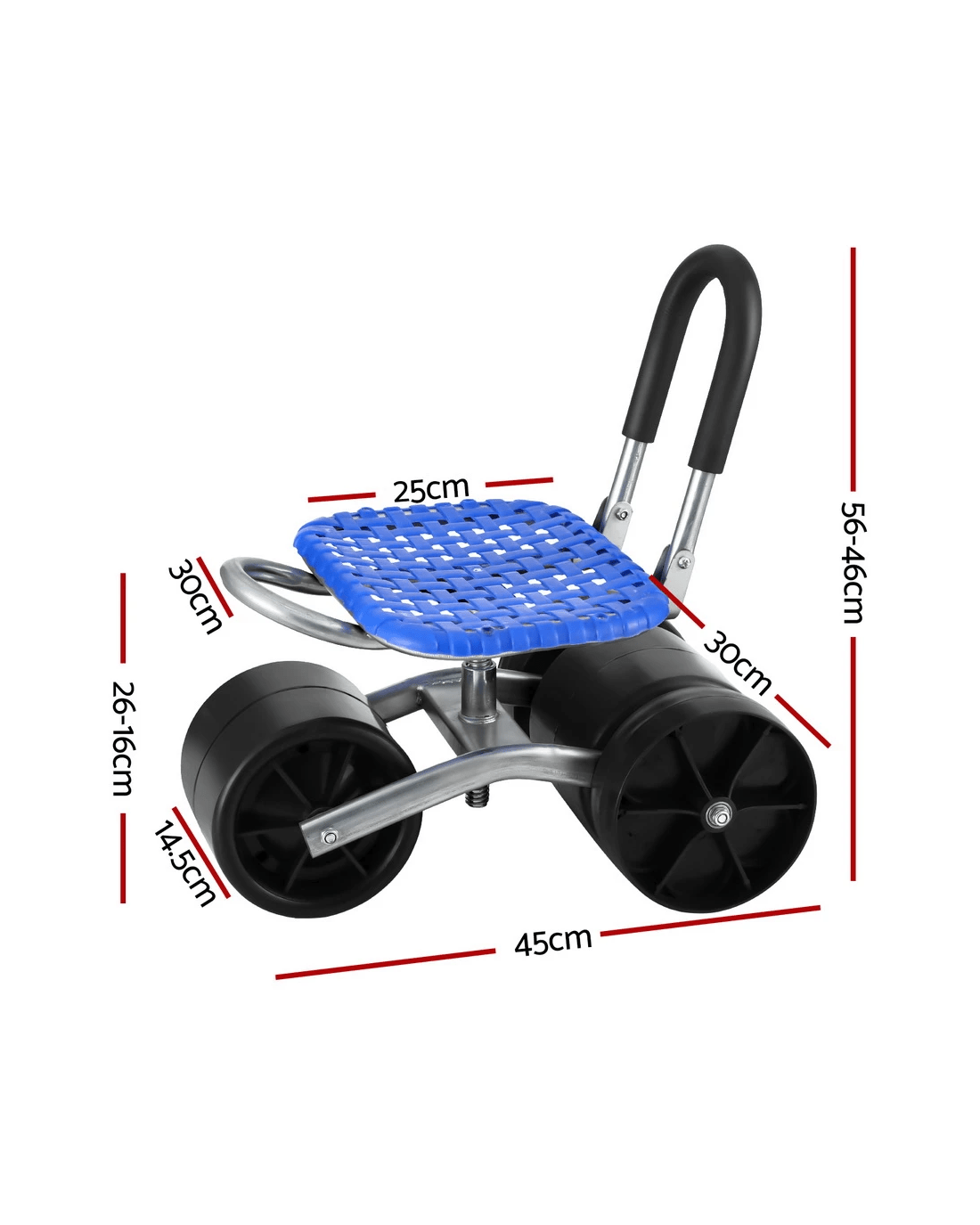 Introducing our versatile Gardeon garden cart! With adjustable height and a 360-degree rotation feature, it's designed for ultimate convenience. The foldable backrest, ventilated seat pad, and sturdy steel frame ensure durability and comfort. Plus, it's easy to store and carry.