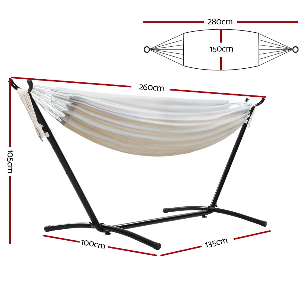 Gardeon Hammock Bed Camping Chair Outdoor Lounge Single Cotton with Stand - Beige