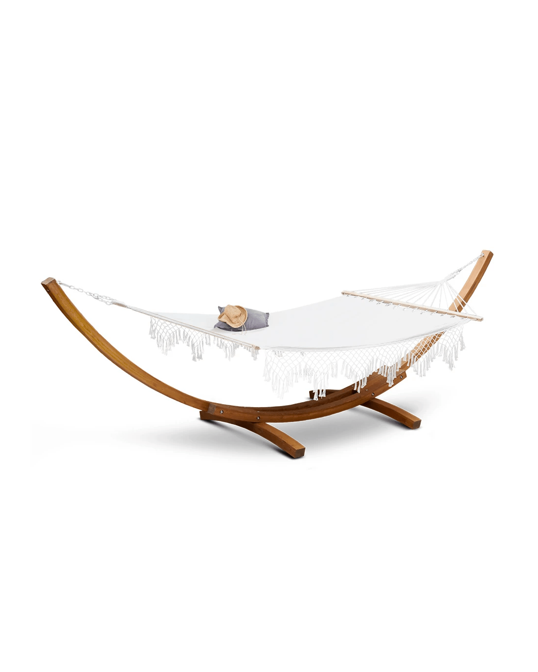 Sold by Aisle SixGardeon Hammock Bed Outdoor Camping Garden Tassel Timber Hammock - White