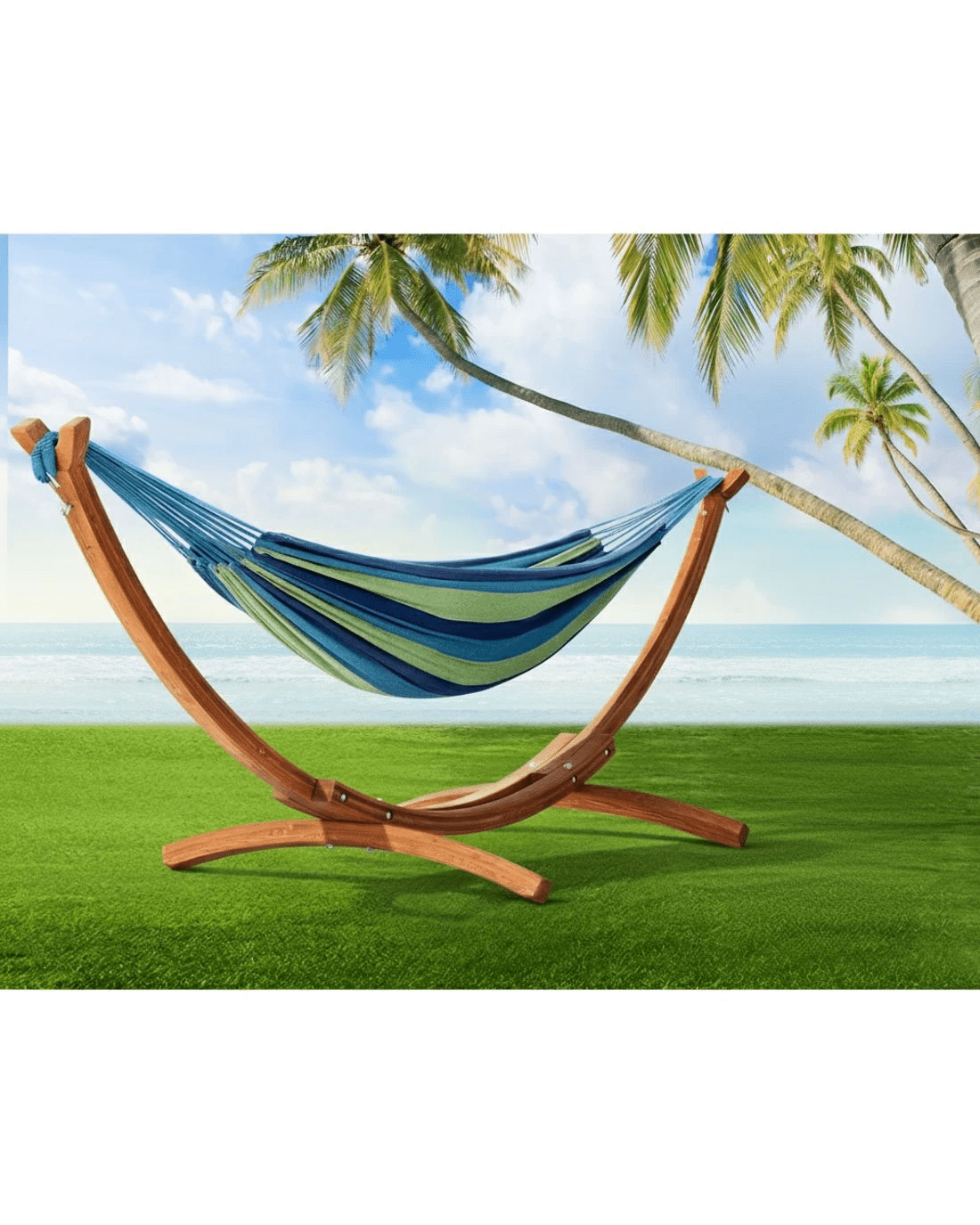Picture yourself on a lazy Sunday, book in hand, swaying gently amidst the whispering trees. Our Gardeon Timber Hammock, crafted from durable larch wood, is your perfect retreat. Its soft-touch polyester-cotton blend ensures cozy comfort as you read, nap, or daydream. Combining luxury with versatility, it's the ideal spot for your moments of relaxation.