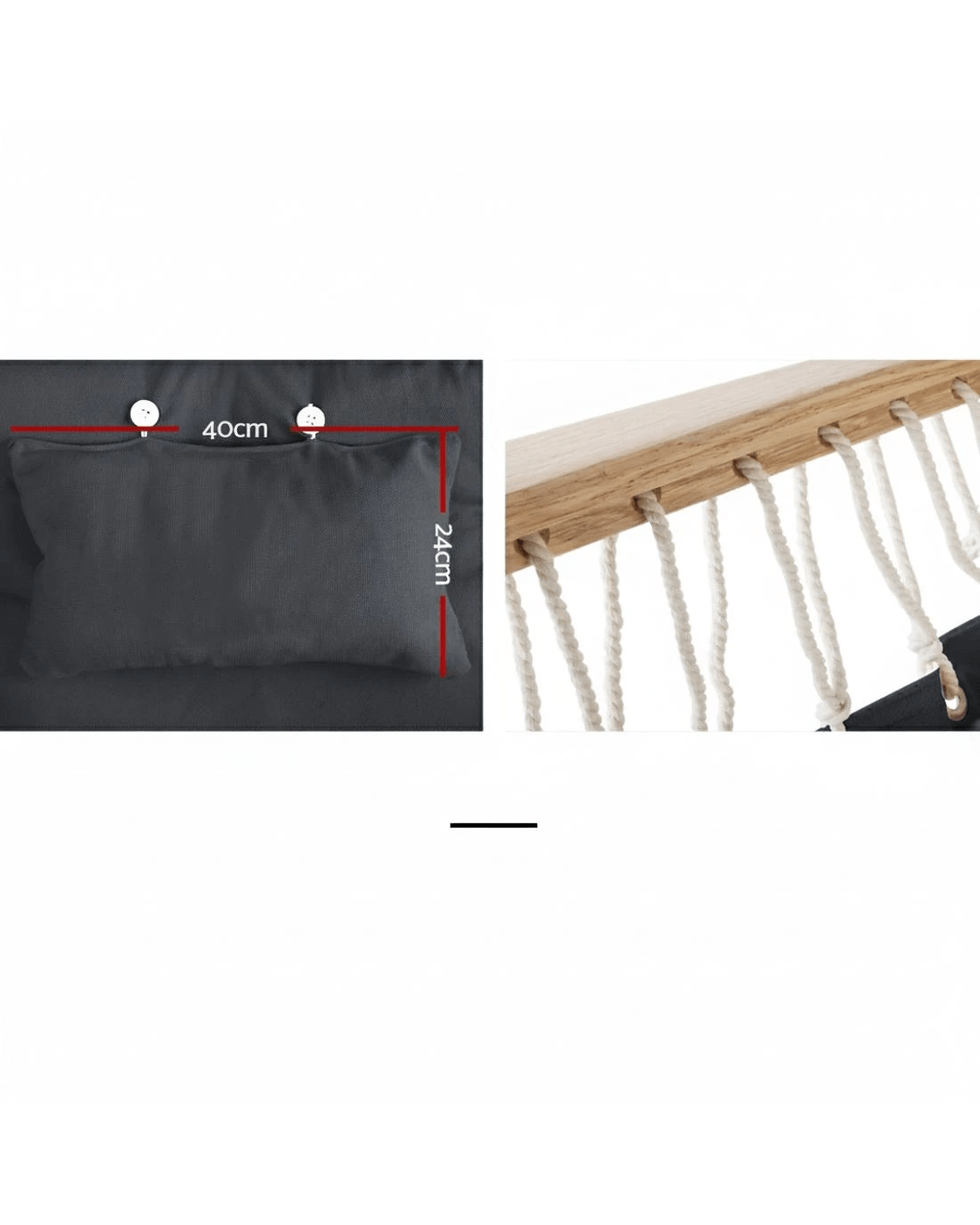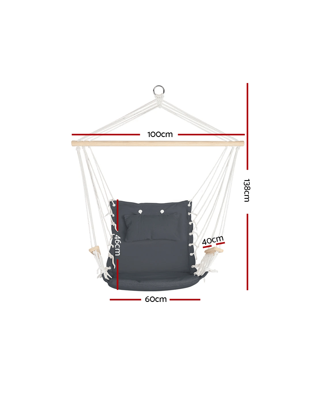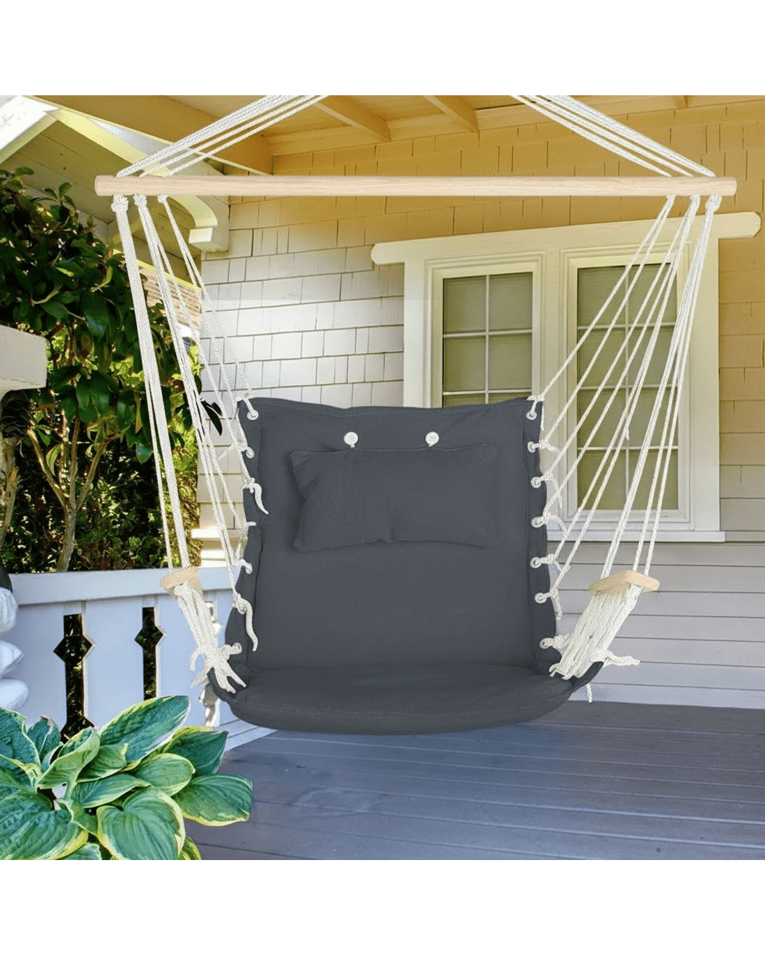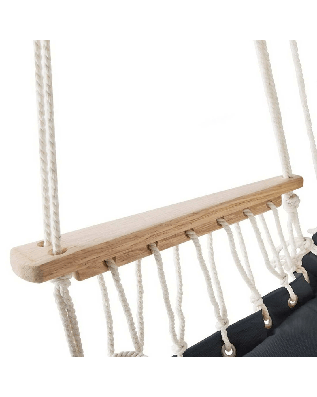 Made from quality polyester cotton with a solid timber rail, our Hammock Chair can rope in a maximum of 120kg in weight. It's easy to install with only one anchoring point and is absolutely safe and strong.