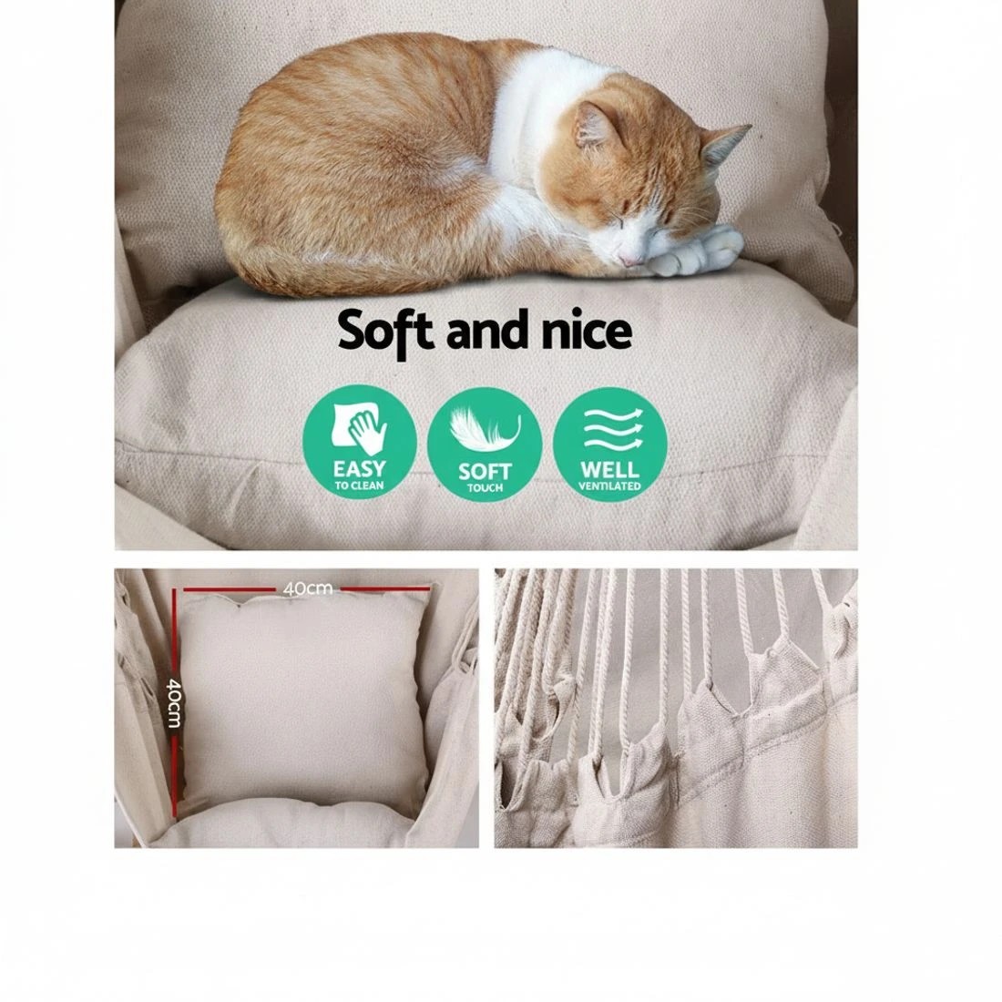 Gardeon Hammock Chair Outdoor Camping Hanging Hammocks Cushion Pillow - Beige