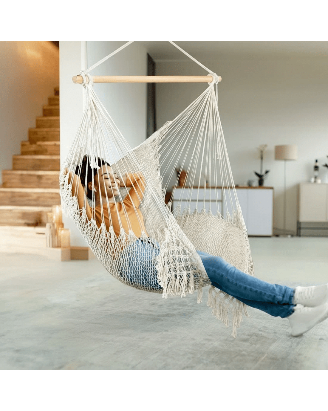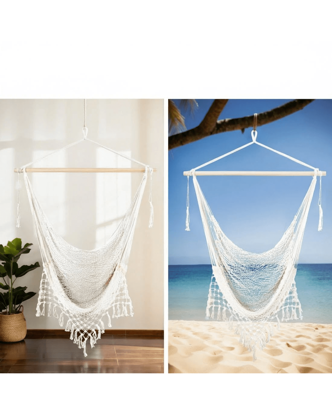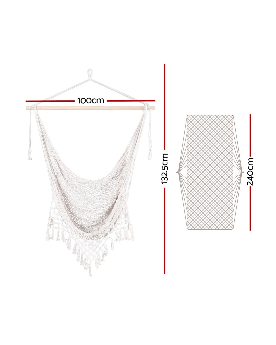 Experience the ultimate relaxation with the Gardeon Hammock Chair, crafted from a durable and soft-touch cotton blend fabric that provides exceptional comfort. The smooth finishing natural timber rail adds a touch of elegance and ensures sturdy support. Lightweight and easy to carry, this hammock chair is perfect for both indoor and outdoor settings, requiring no assembly for effortless setup