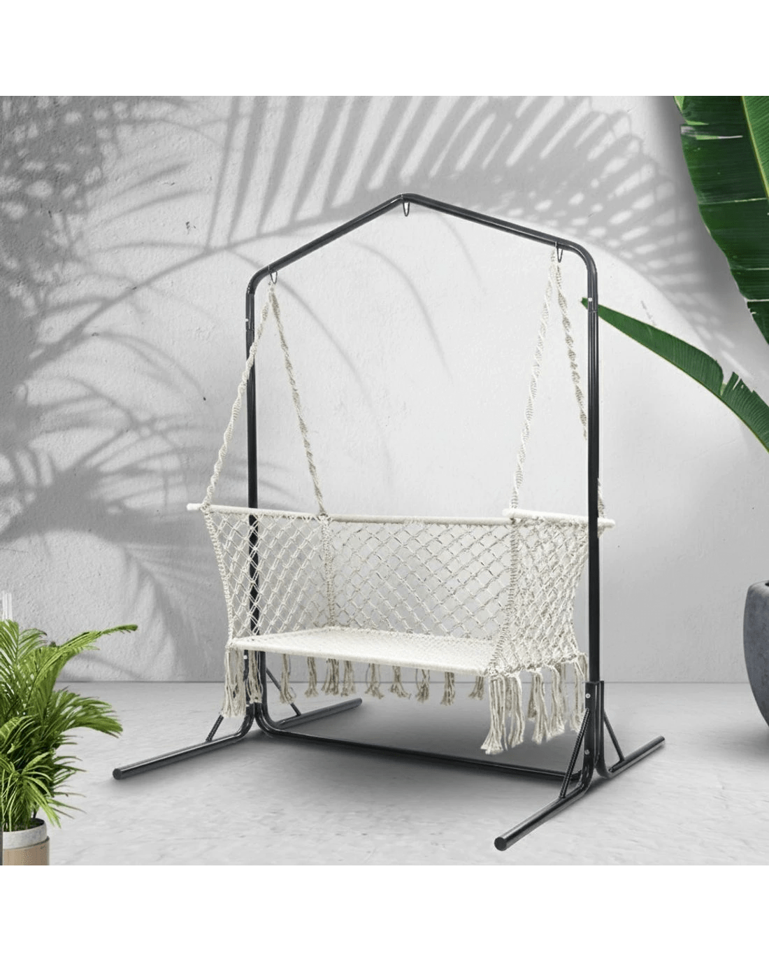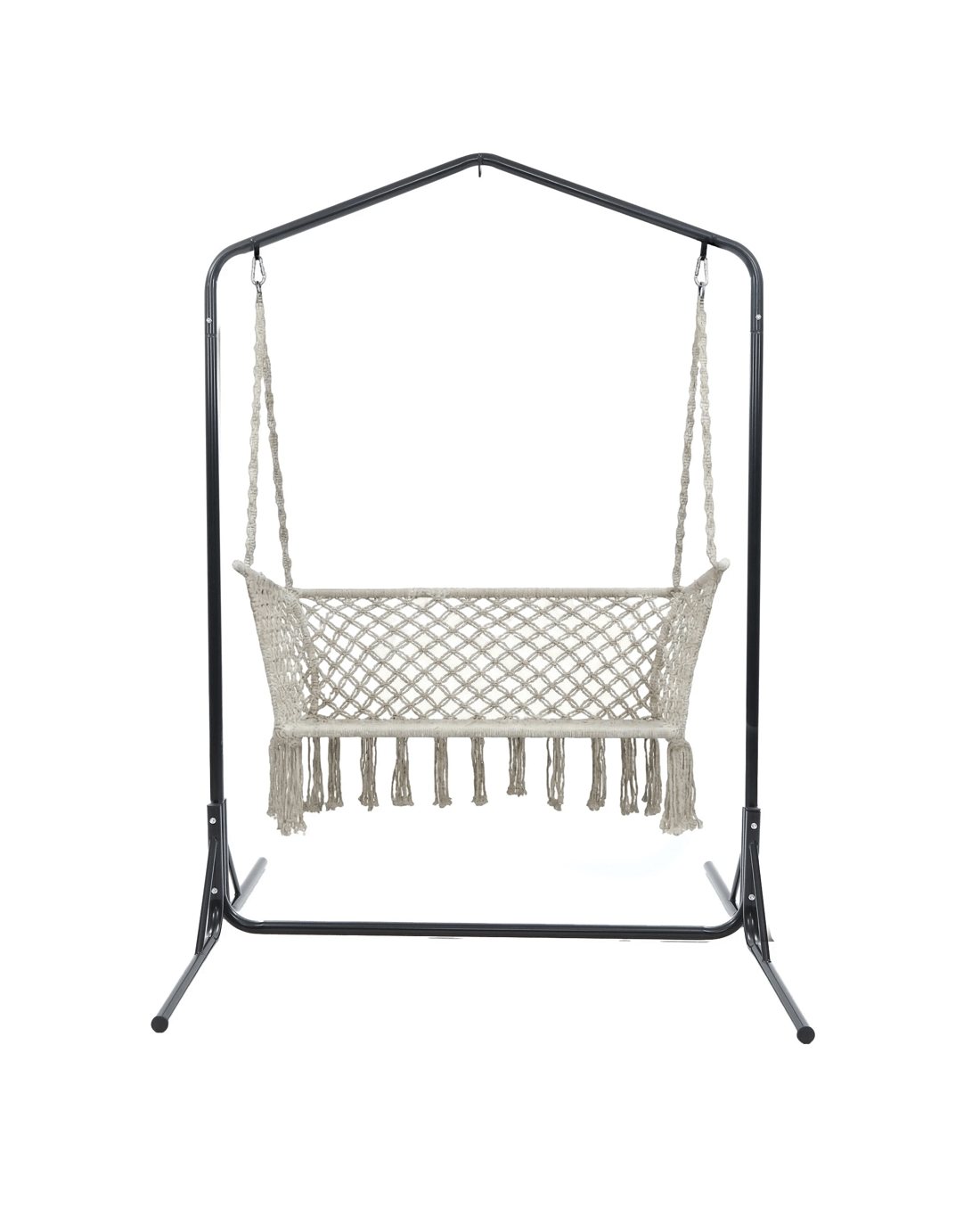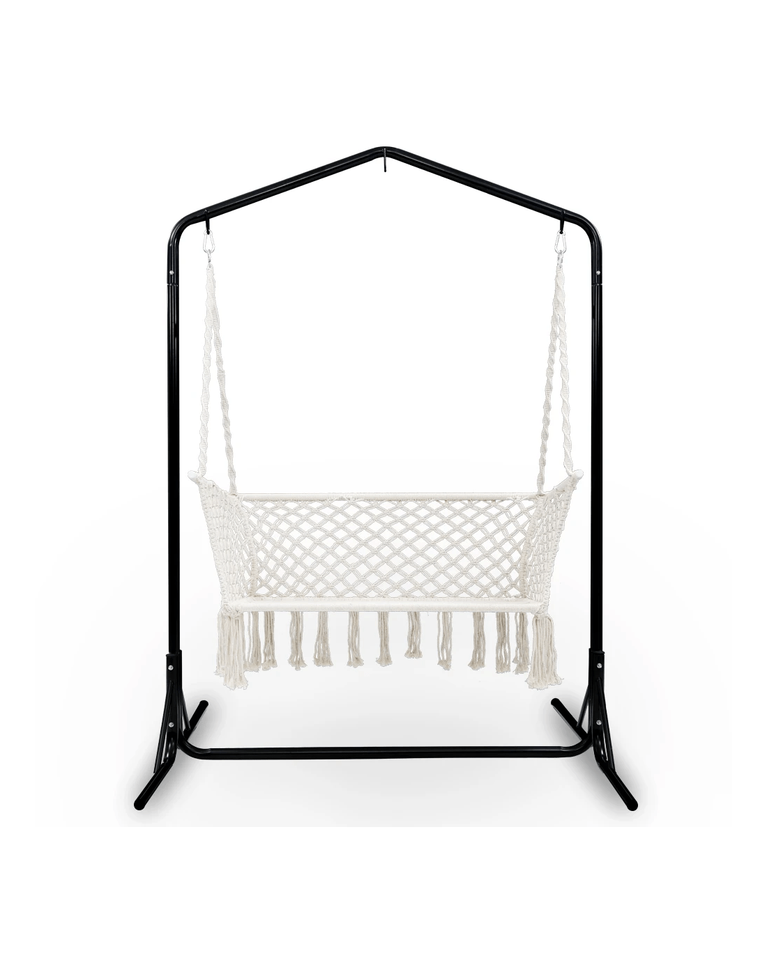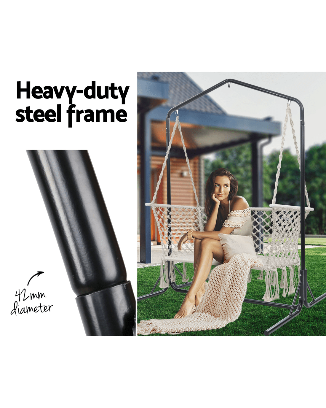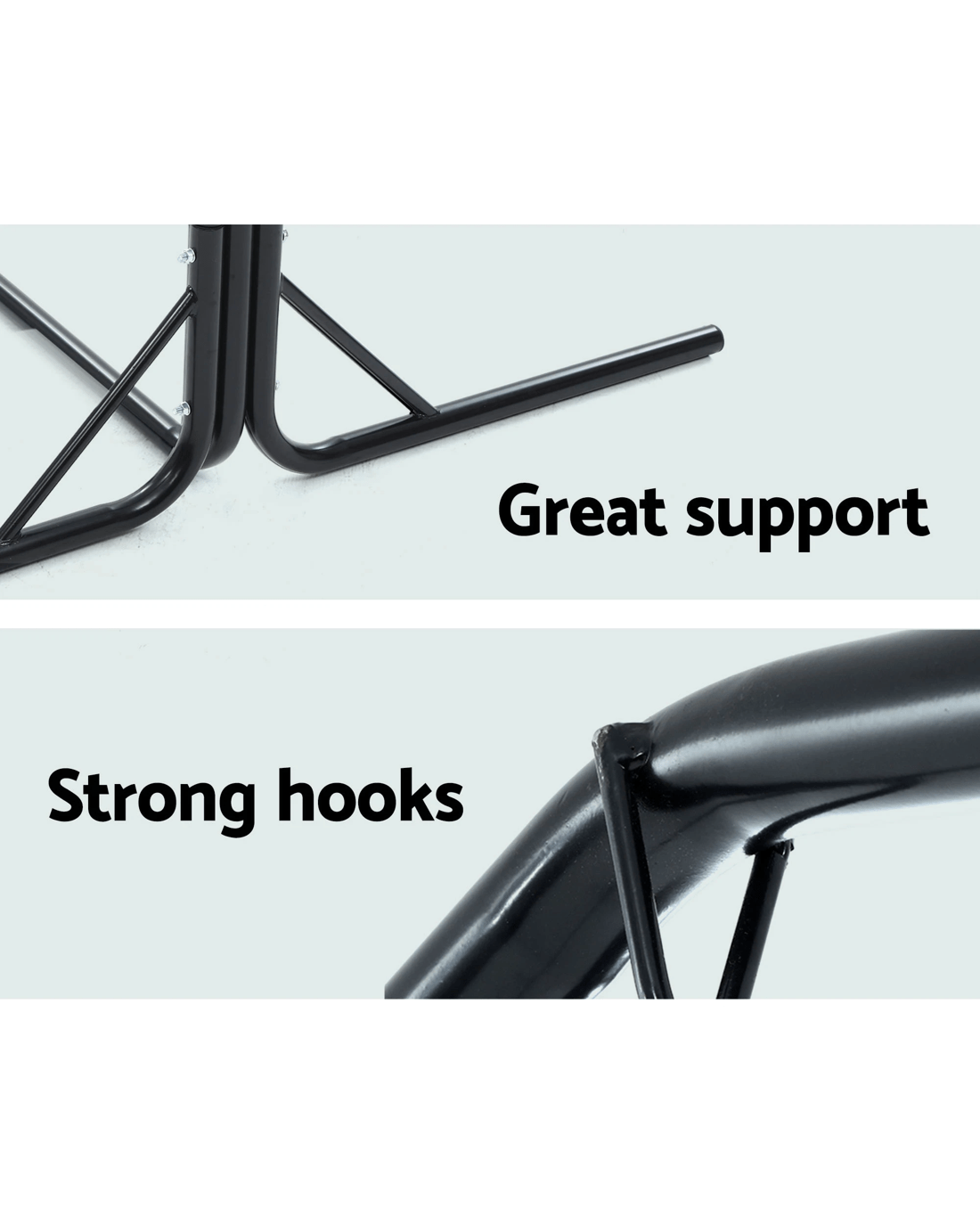Need a heavy-duty stand for your hammock chair? Look no further than the Gardeon Full-frame Hammock Chair Stand. One of our popular models, the full-frame stand remains a firm favourite with customers who love to have their hammock chairs indoors or outdoors. Crafted from powder-coated steel, the 1.6m frame is designed to be weather-resistant and rust-resistant and strong enough to withstand robust use of up to 200kg weight capacity. Simply hook up your single or 2-seater hammock chair to the reinforced S-hook, adjust the desired height and you are ready for a relaxing time in the chair in the backyard, at the balcony, by the pool side or simply in your living room. Not least, the wide base ensures that the entire ensemble is safe and sturdy for many years of wonderful relaxation and leisure with your hammock chair.