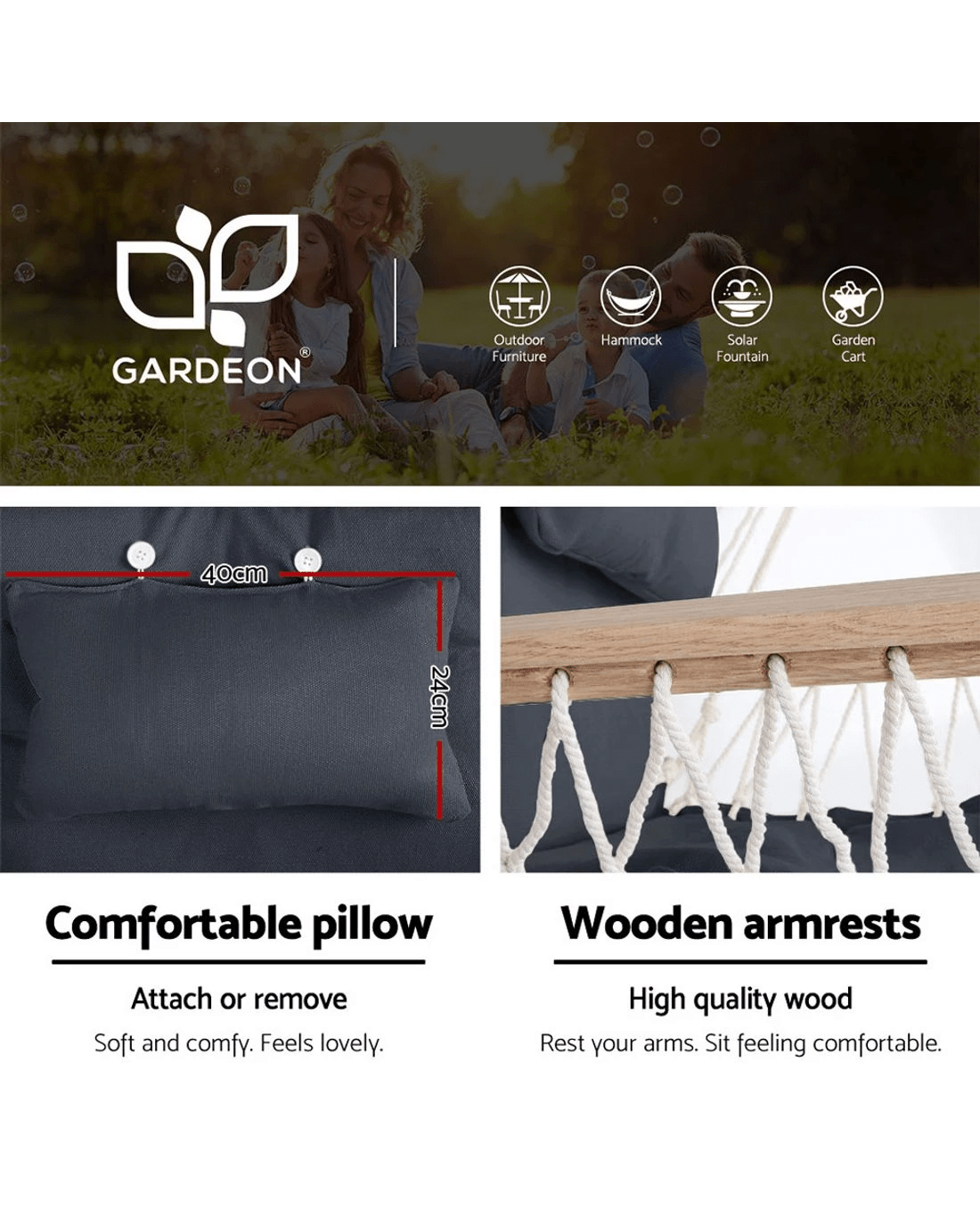Gardeon Hammock Chair with Steel Stand Armrest Outdoor Hanging - Multi