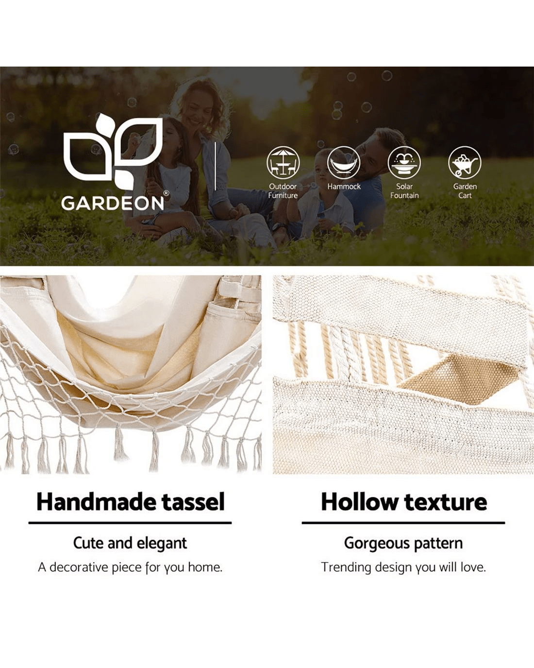 Nothing can make you happier and satisfied than lazily resting in Gardeon hanging hammock chair set! It makes a perfect spot for peaceful reading or just unwinding on sunny afternoons.