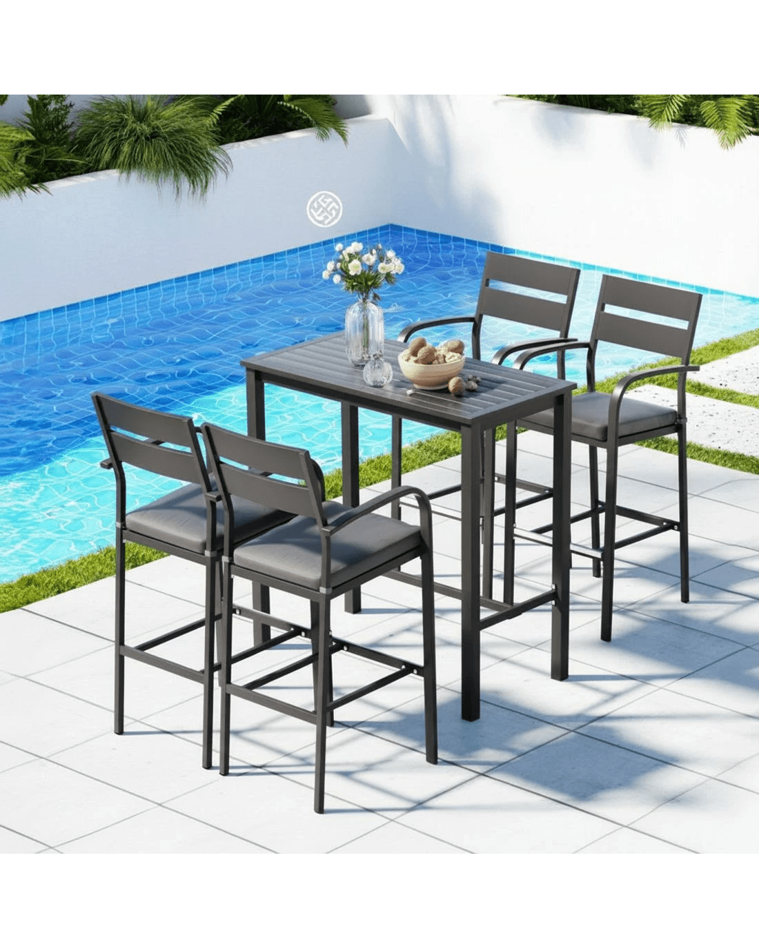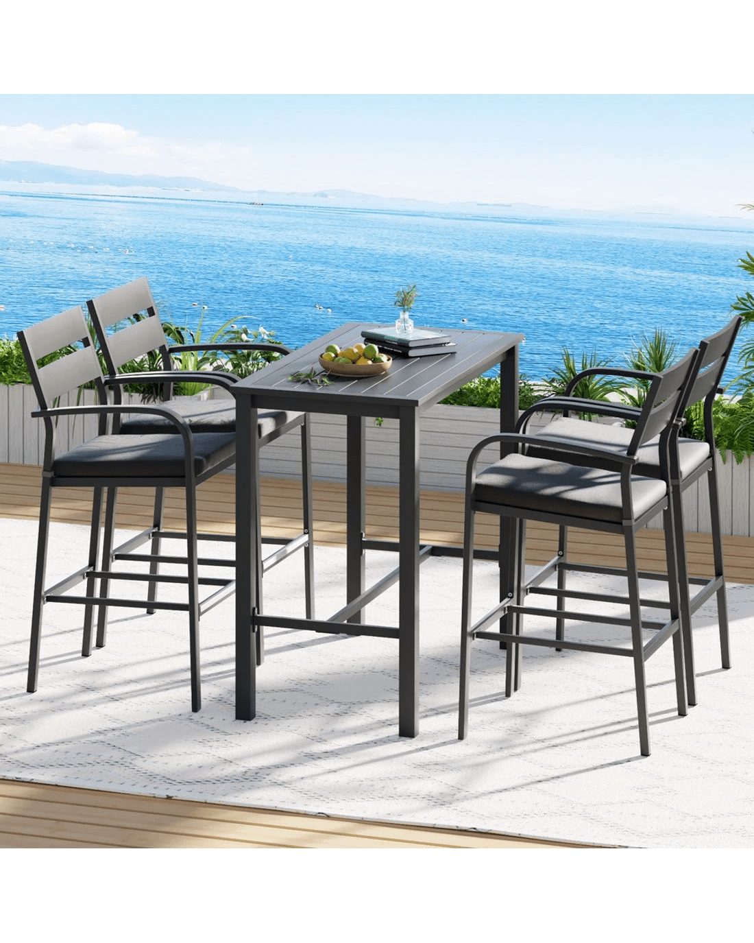 Sold by Aisle SixGardeon Outdoor Bar Set 5-Piece Patio Dining Chairs Aluminium Table Stools - Black