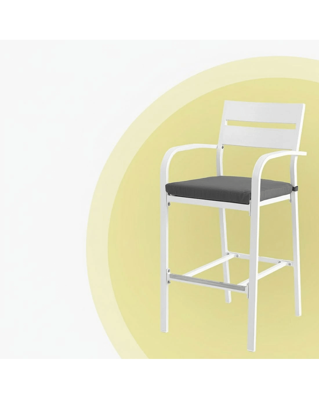 Elevate your outdoor living with Gardeon's stylish 3-piece aluminum bar stool set, perfect for creating an inviting bar area in your backyard, business, or holiday home. These weather-resistant stools feature a finely slatted backrest, curved armrests, and a built-in footrest for optimal comfort, while secured foot pads ensure stability on various surfaces. The removable, extra-thick cushions provide plush seating, making these stools ideal for outdoor enjoyment.