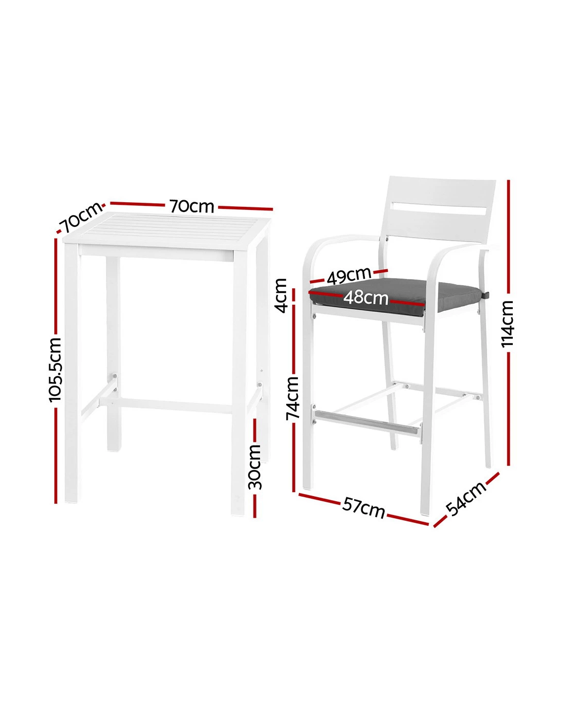 Sold by Aisle SixGardeon Outdoor Bar Set Stools 3-Piece Dining Chairs Table Patio Aluminium Bistro Set - White