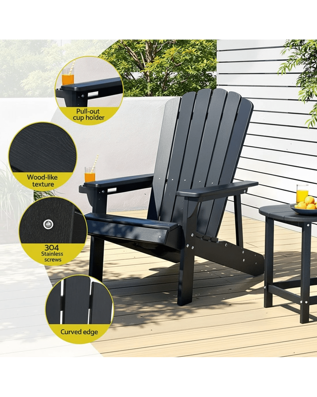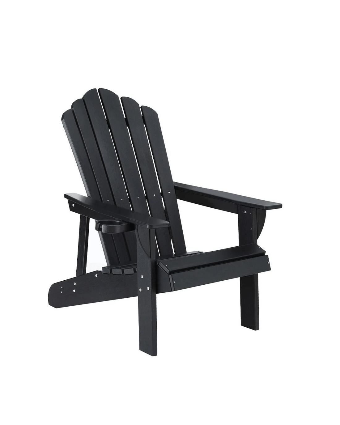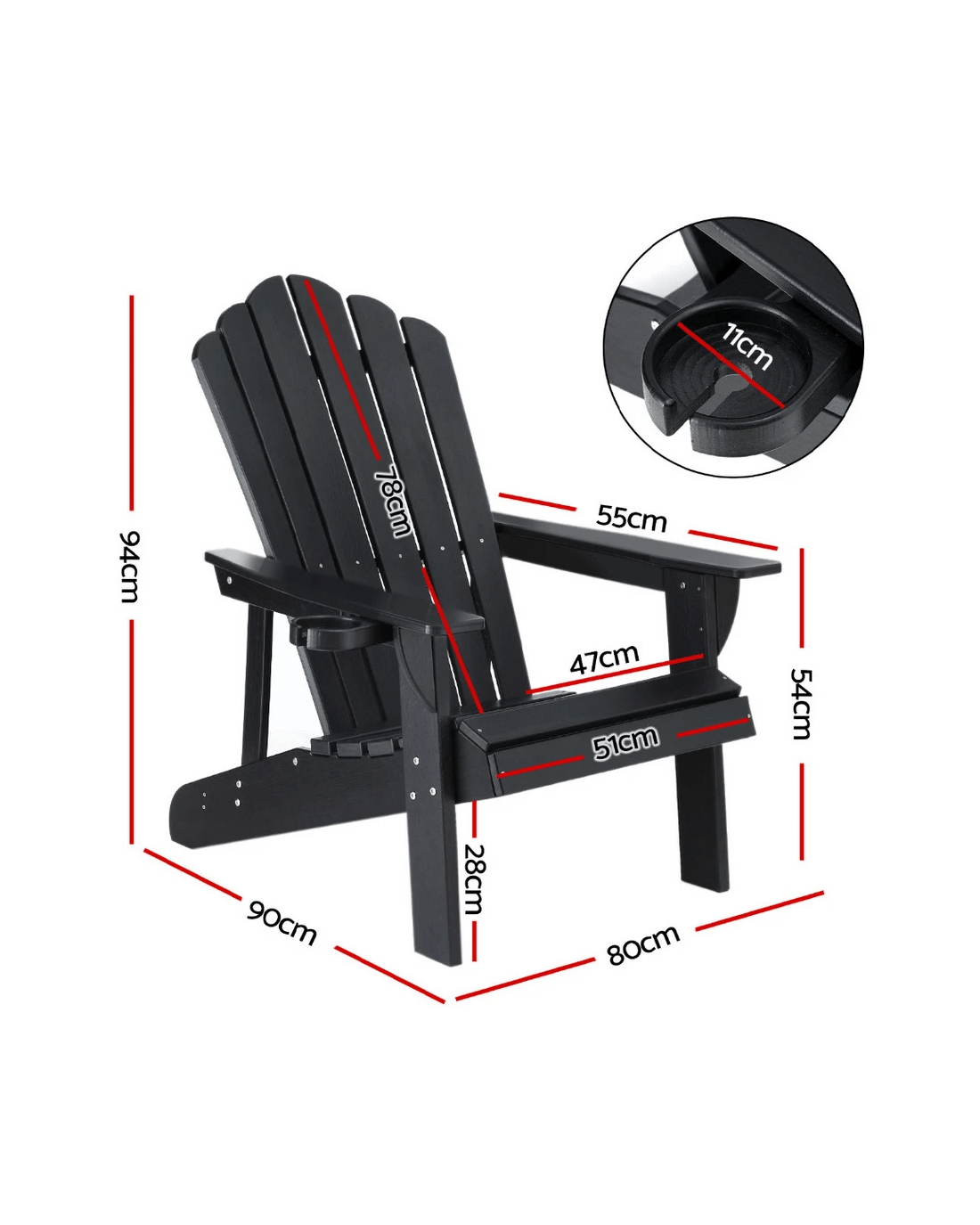 Gardeon Outdoor Chairs HDPE Adirondack Beach Chair Sun Lounge Patio Furniture Garden - Black