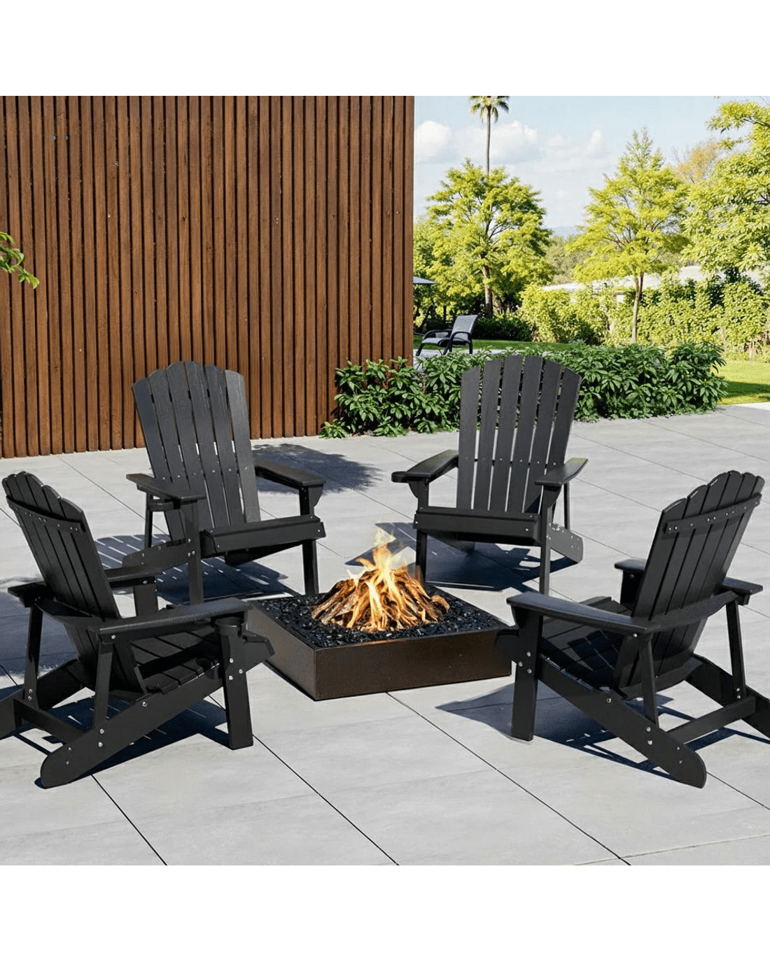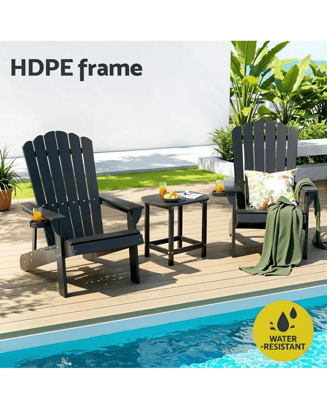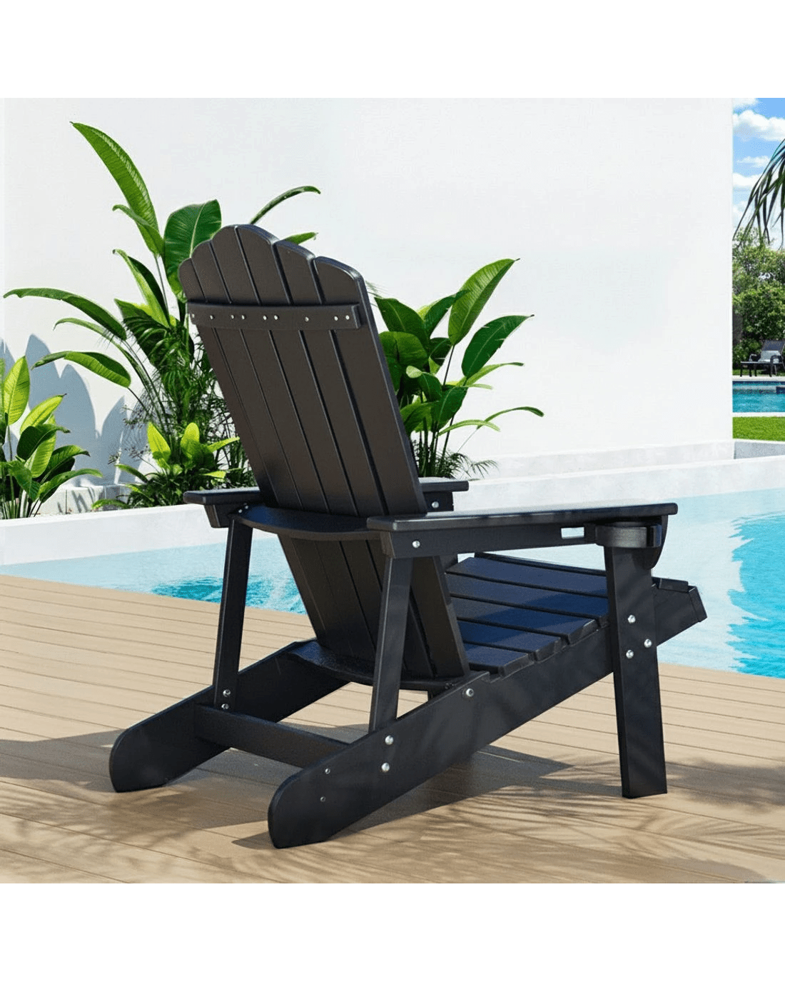 Gardeon Outdoor Chairs HDPE Adirondack Beach Chair Sun Lounge Patio Furniture Garden - Black