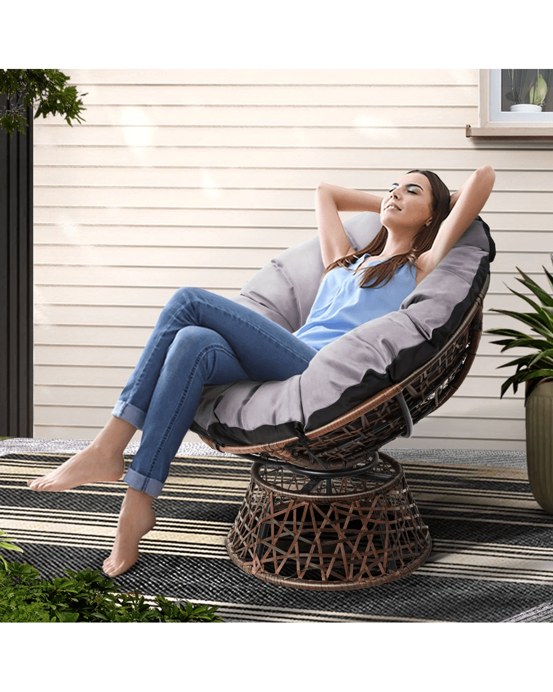 Gardeon Outdoor Chairs Outdoor Furniture Papasan Chair Wicker Patio Garden