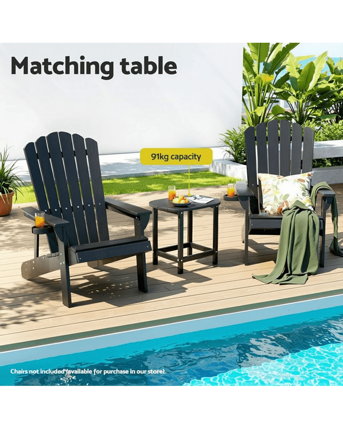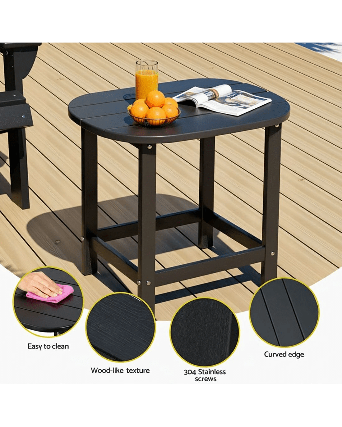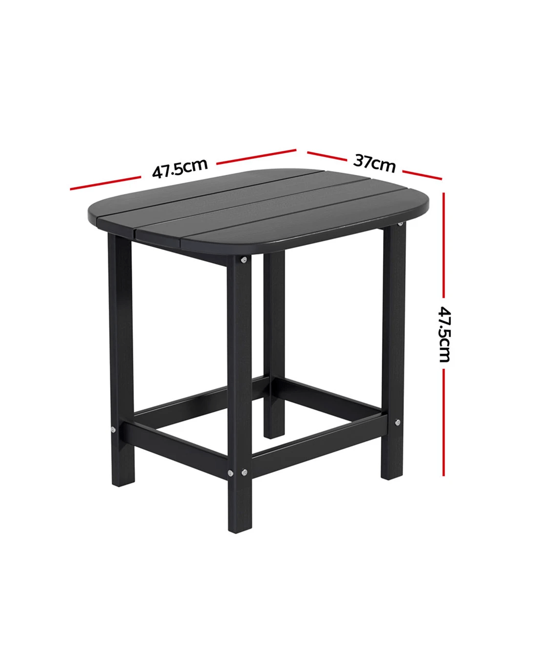 Upgrade your space with Gardeon durable HDPE side table! Weatherproof and fade-resistant, it withstands outdoor conditions without cracking. Features 91kg load capacity, water-draining slats, and safety-curved edges. At 47.5cm height, it perfectly complements Adirondack chairs (sold separately). Zero maintenance—just wipe clean. Ideal for patios, gardens, or indoor use. Quick 3-step assembly with included stainless steel screws.
