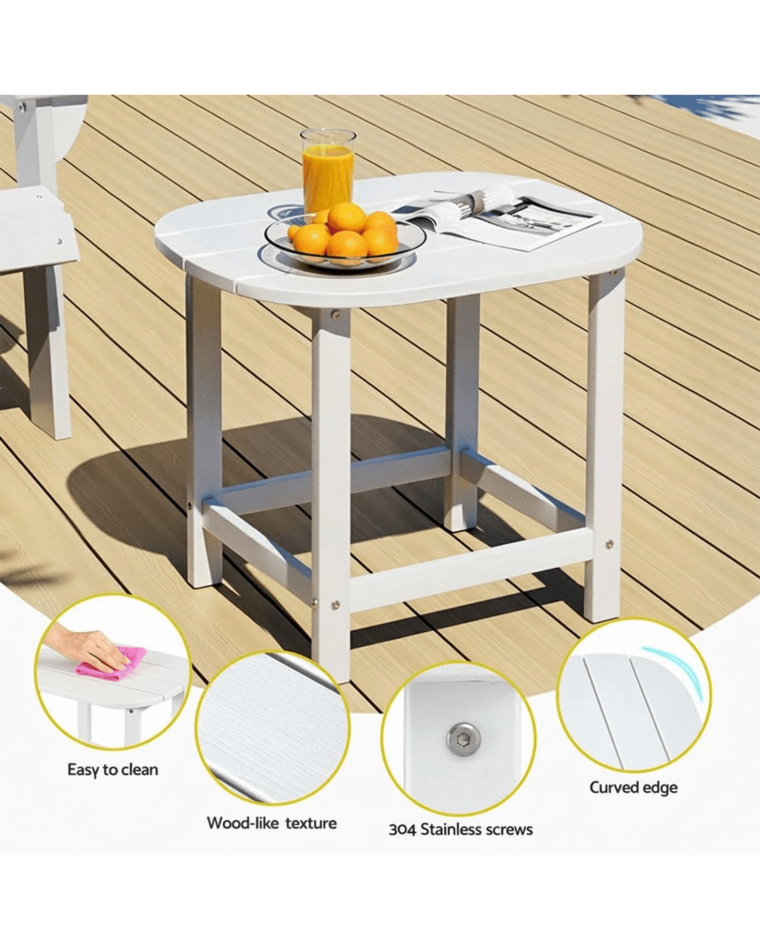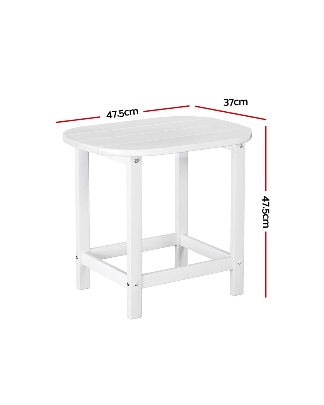 Upgrade your space with Gardeon durable HDPE side table! Weatherproof and fade-resistant, it withstands outdoor conditions without cracking. Features 91kg load capacity, water-draining slats, and safety-curved edges. At 47.5cm height, it perfectly complements Adirondack chairs (sold separately). Zero maintenance—just wipe clean. Ideal for patios, gardens, or indoor use. Quick 3-step assembly with included stainless steel screws.