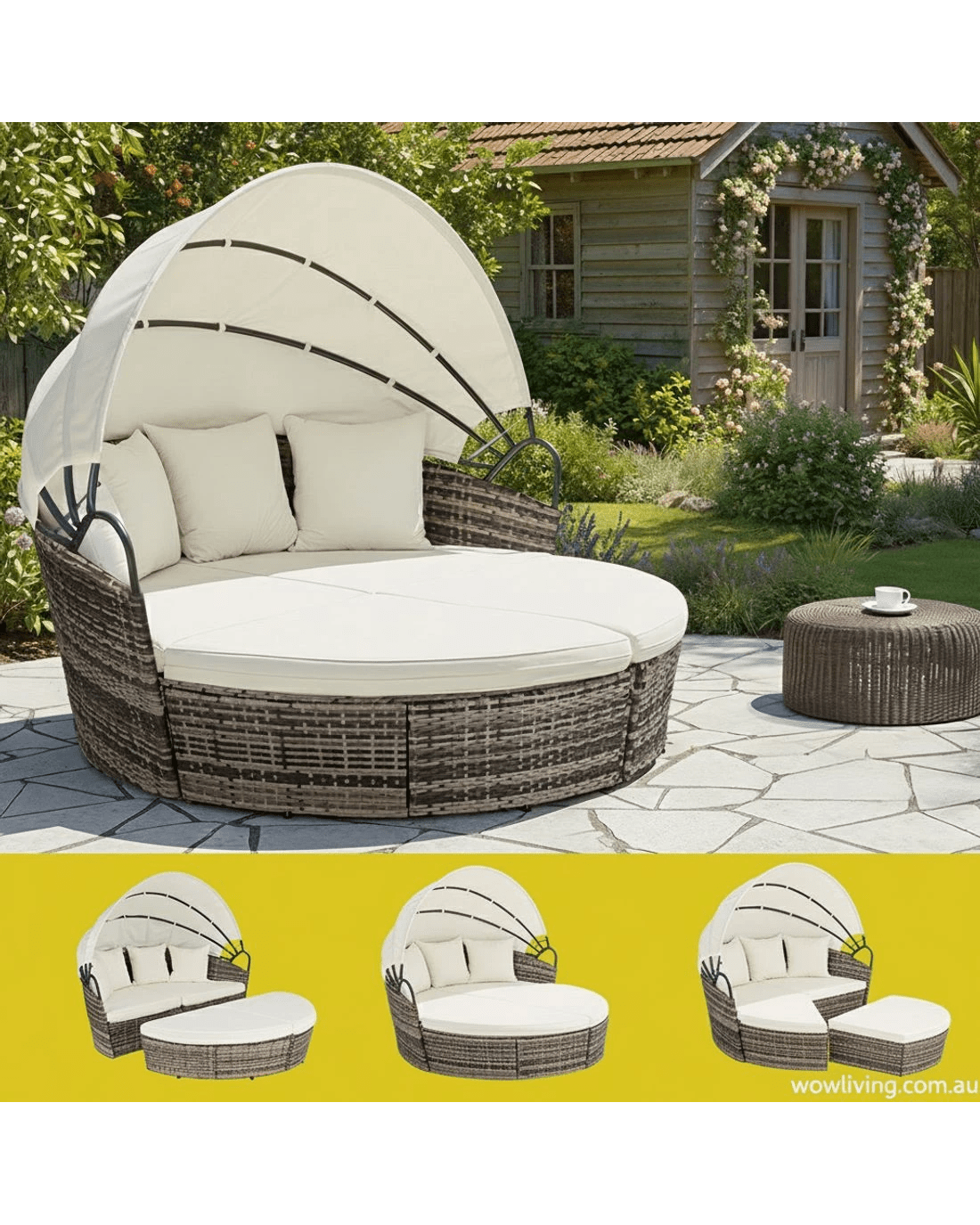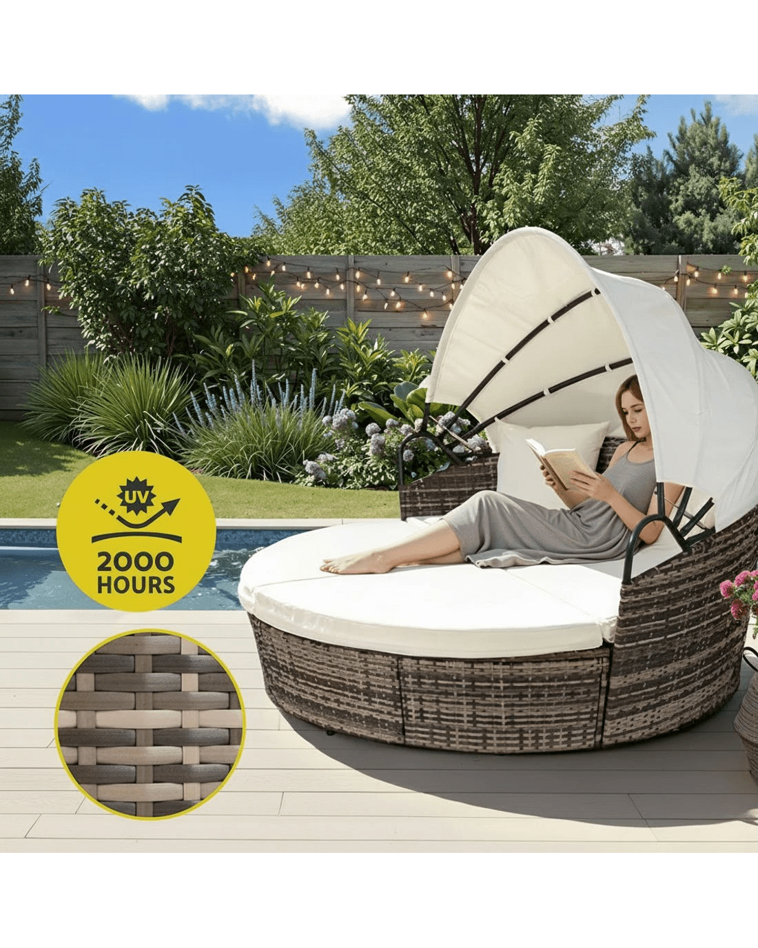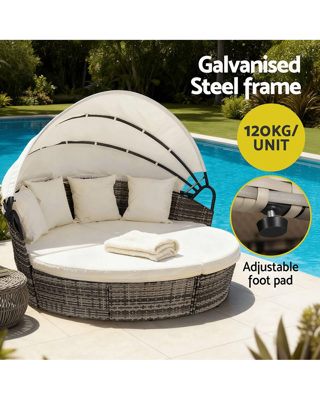 Sold by Aisle SixGardeon Outdoor Day Bed Sun Lounge Setting Wicker Lounger Furniture Patio Set of 3 - Beige