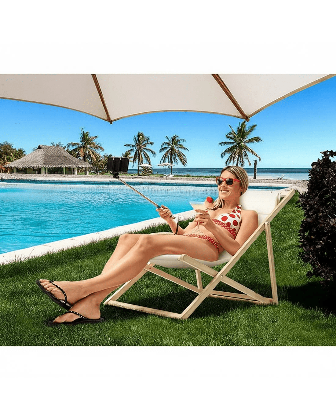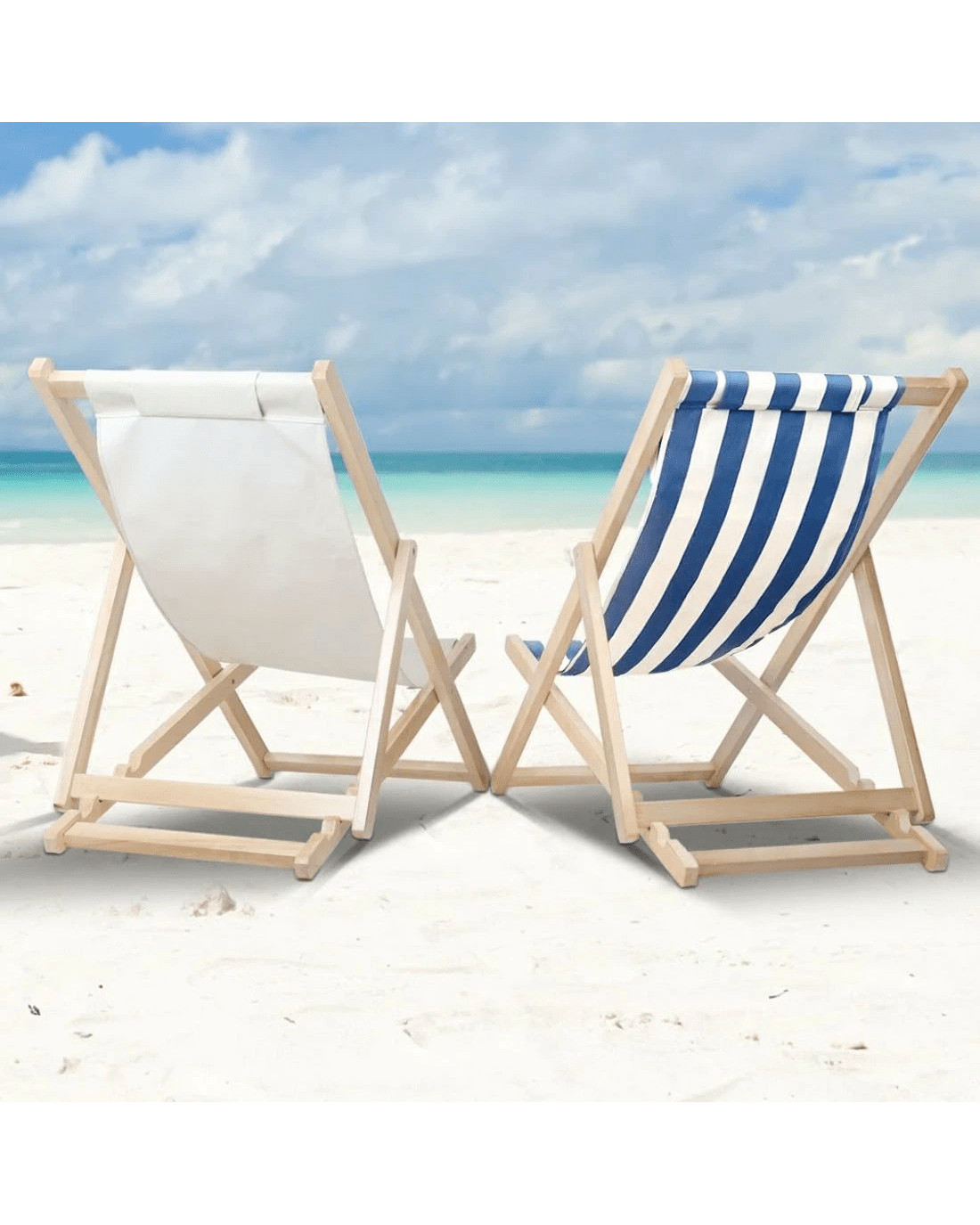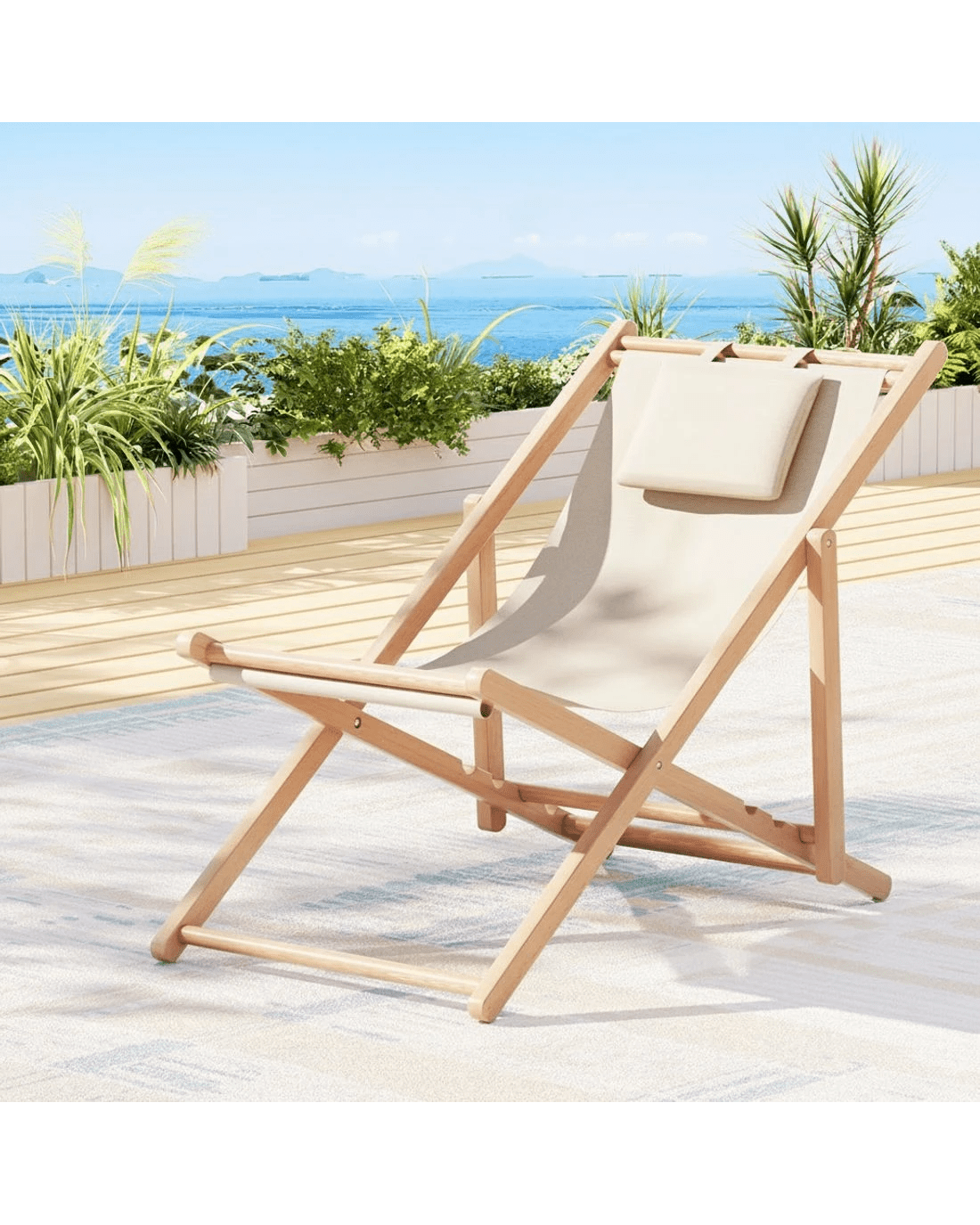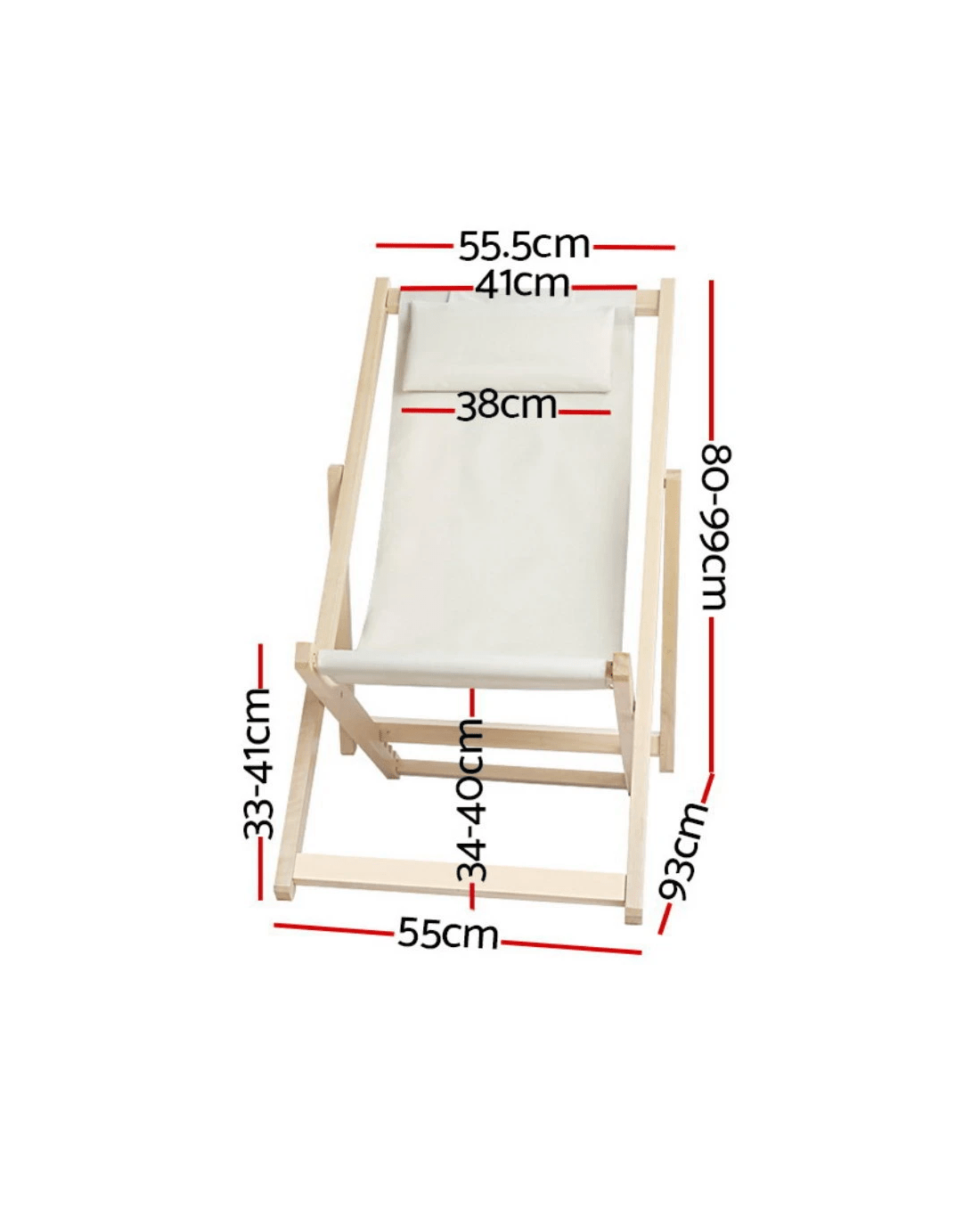 Gardeon Outdoor Deck Chair Wooden Sun Lounge Folding Beach Patio Furniture - Beige