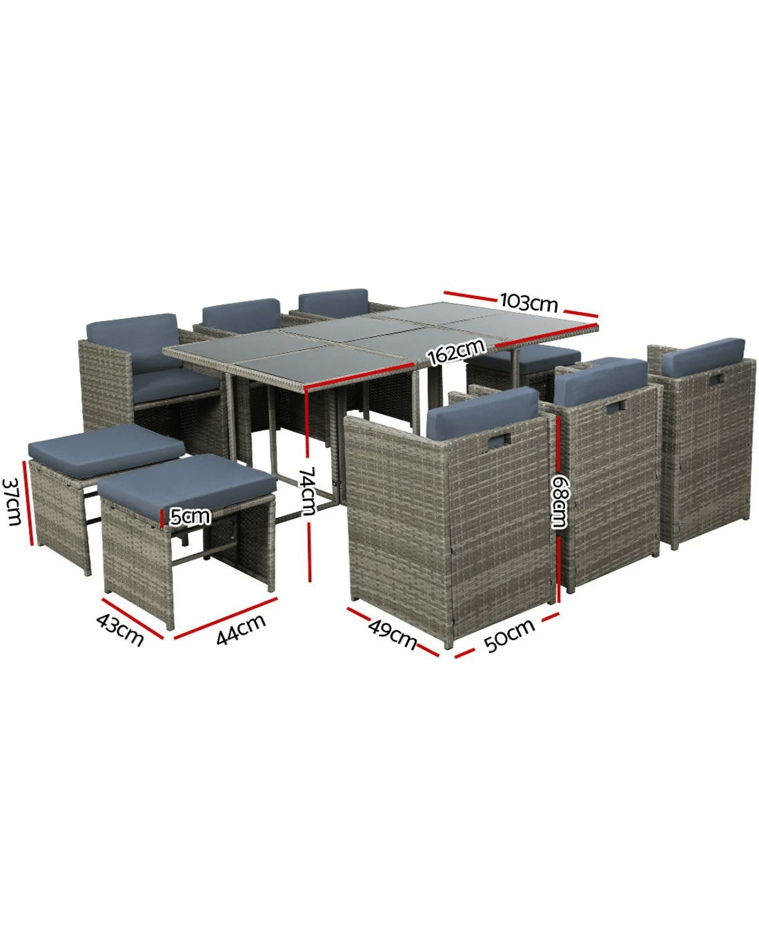 Gardeon Outdoor Dining Set 11 Piece Wicker Table Chairs Setting - Grey
