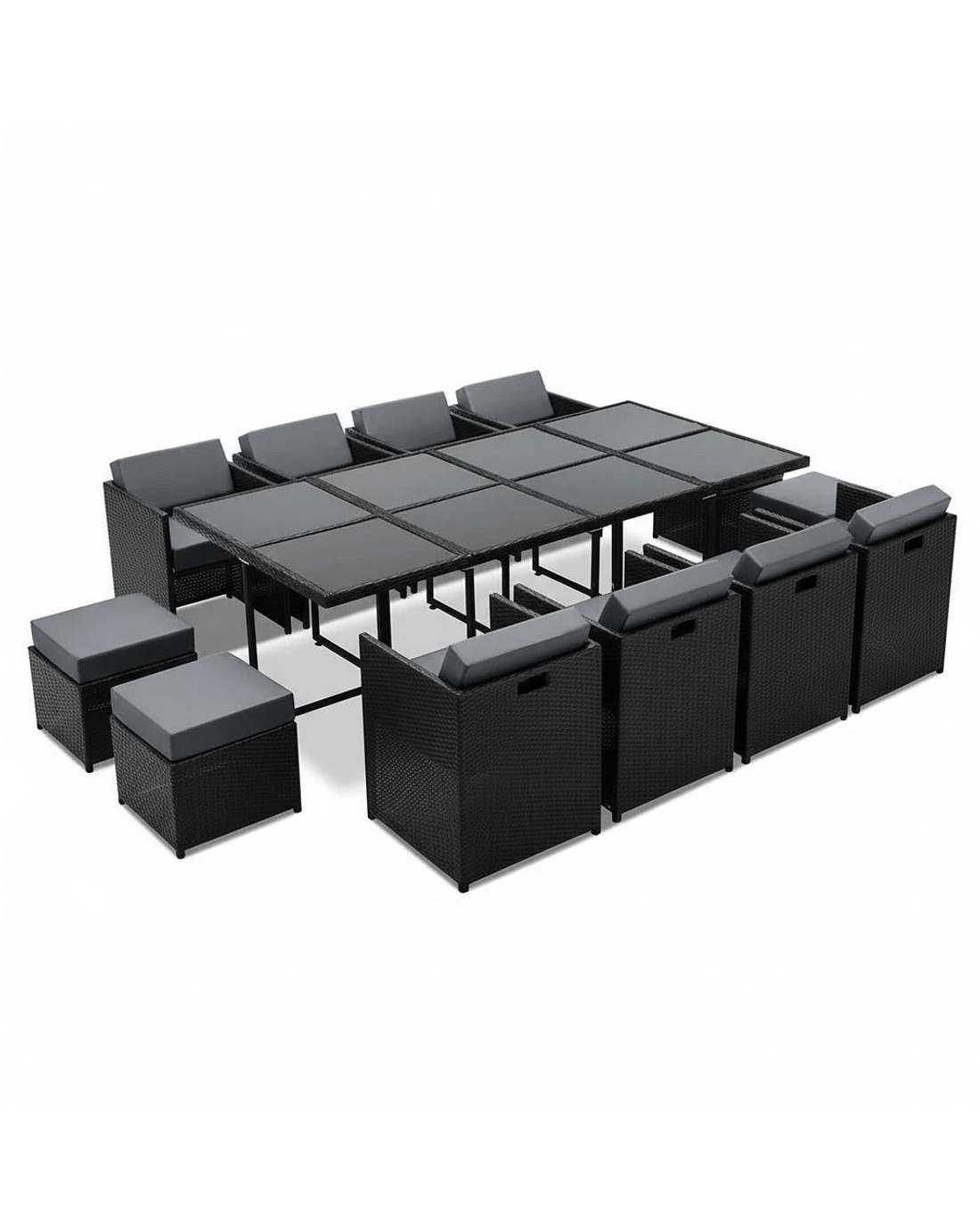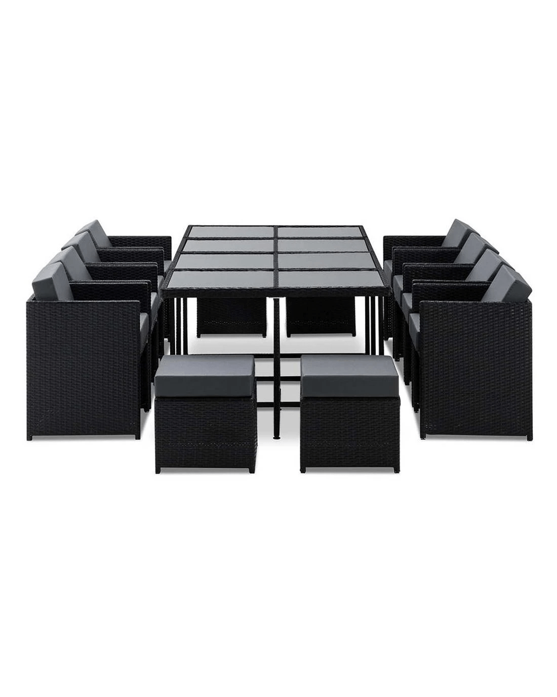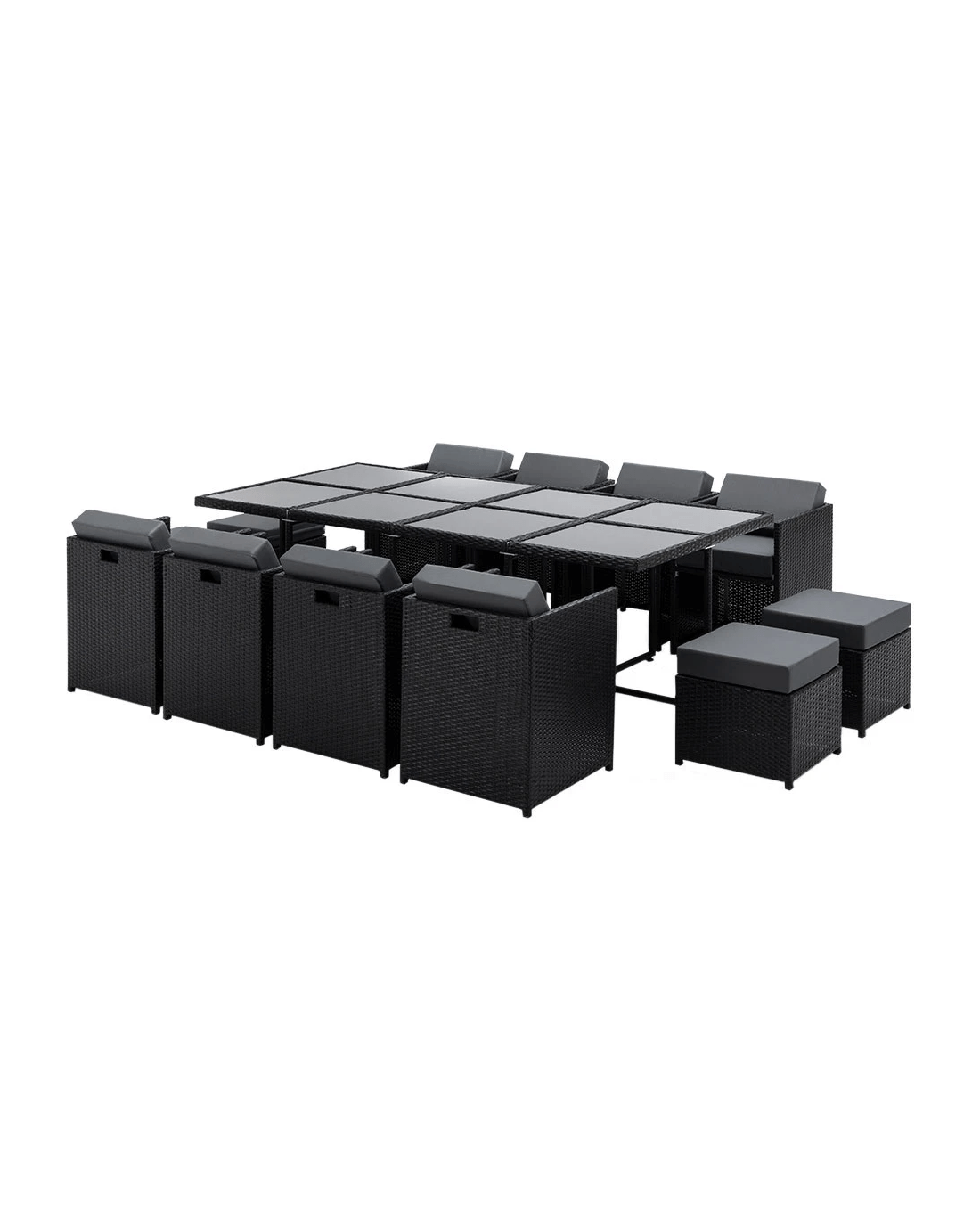 If you're one who likes to appreciate the outdoors, you'll simply love our stylish and yet affordable Hayman 13-piece Dining Set. Designed to seat everyone with the utmost comfort, our Dining Set is padded with high density foam seat cushions for generous support. The frame itself is also made of heavy-duty powder coated aluminium and covered with UV-resistant PE wicker to keep in in great shape in any weather condition. Needless to say, they're made to last. And there's more.