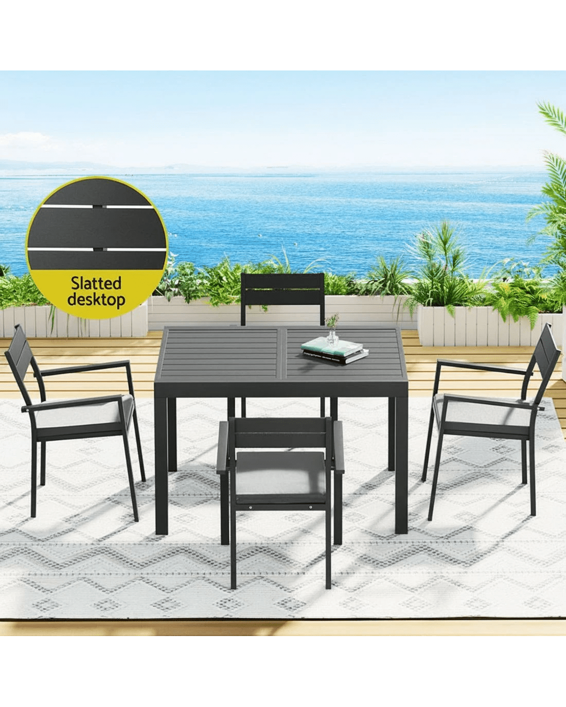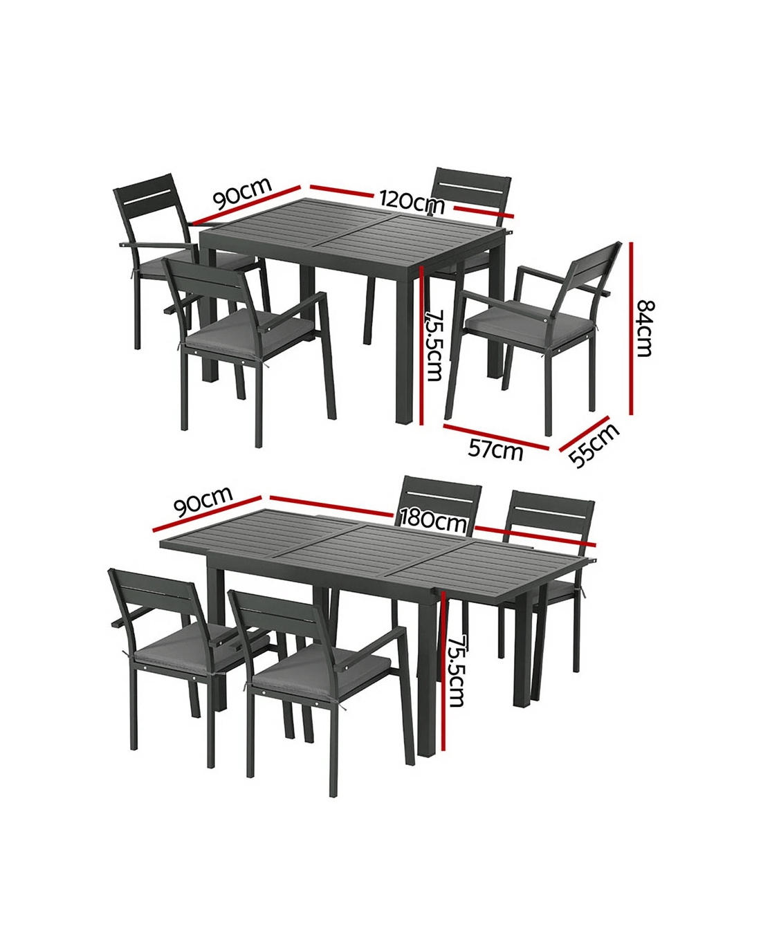 Gardeon Outdoor Dining Set 5 Piece Aluminum Extendable Table Setting - Black