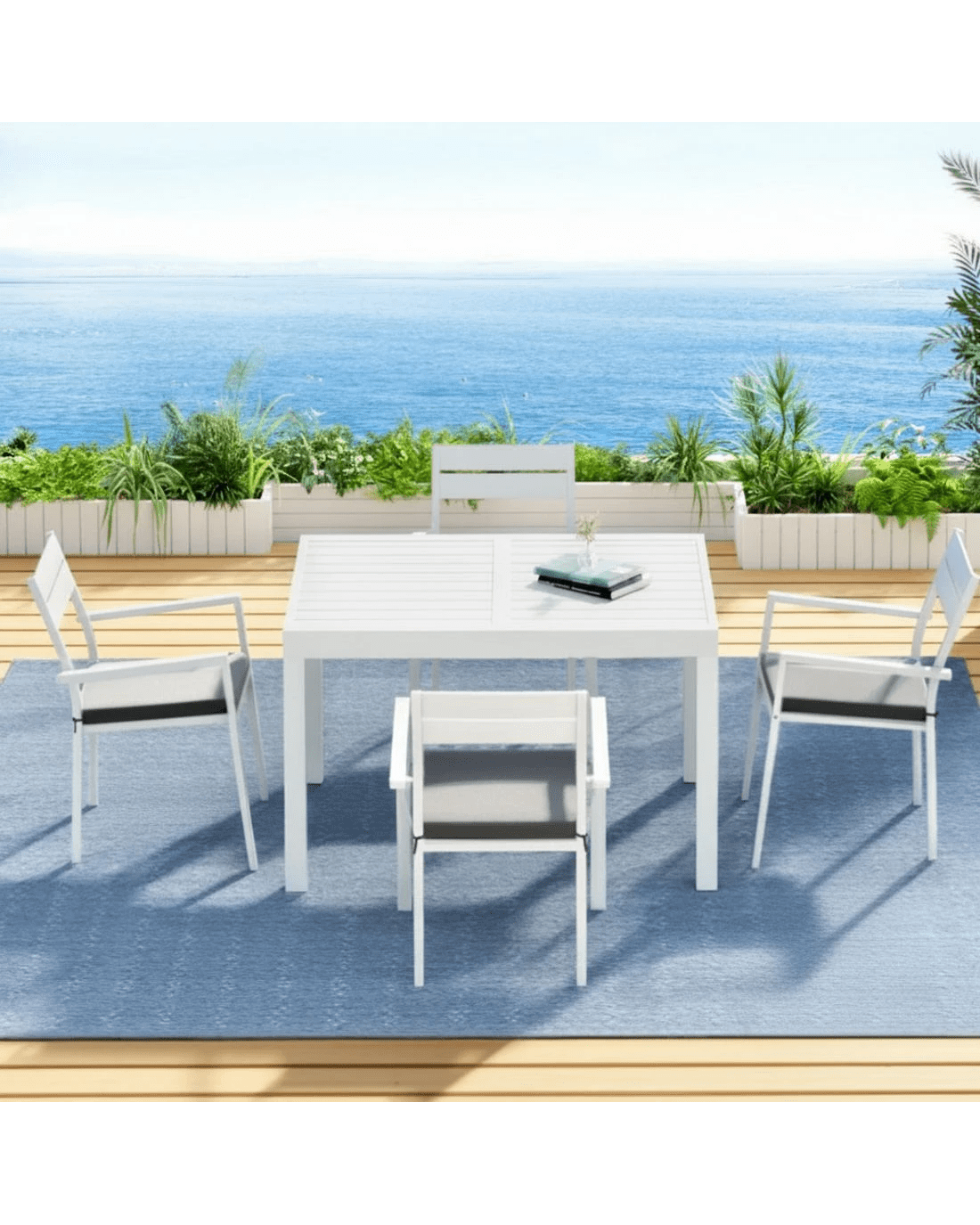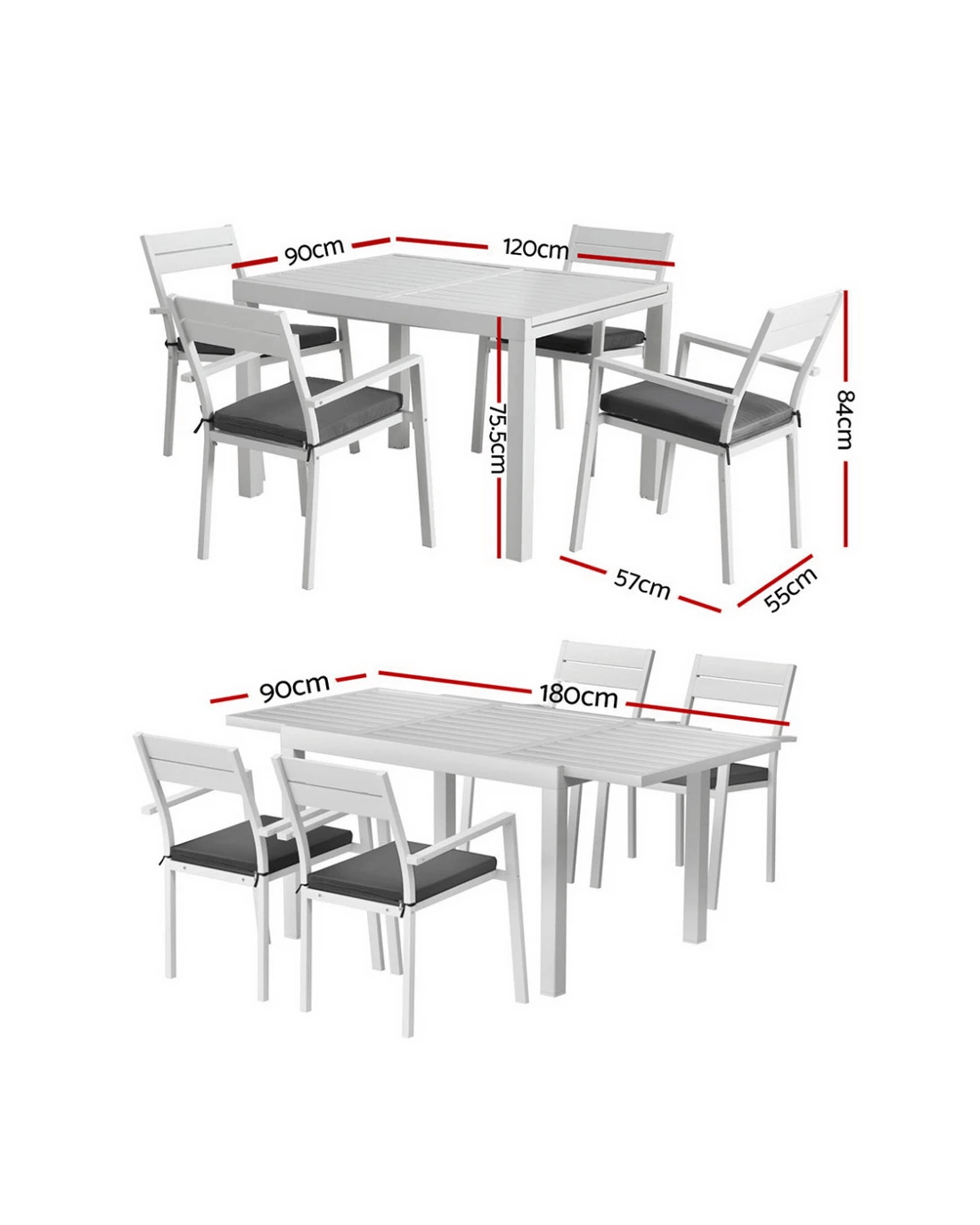 Gardeon Outdoor Dining Set 5 Piece Aluminum Extendable Table Setting - White
