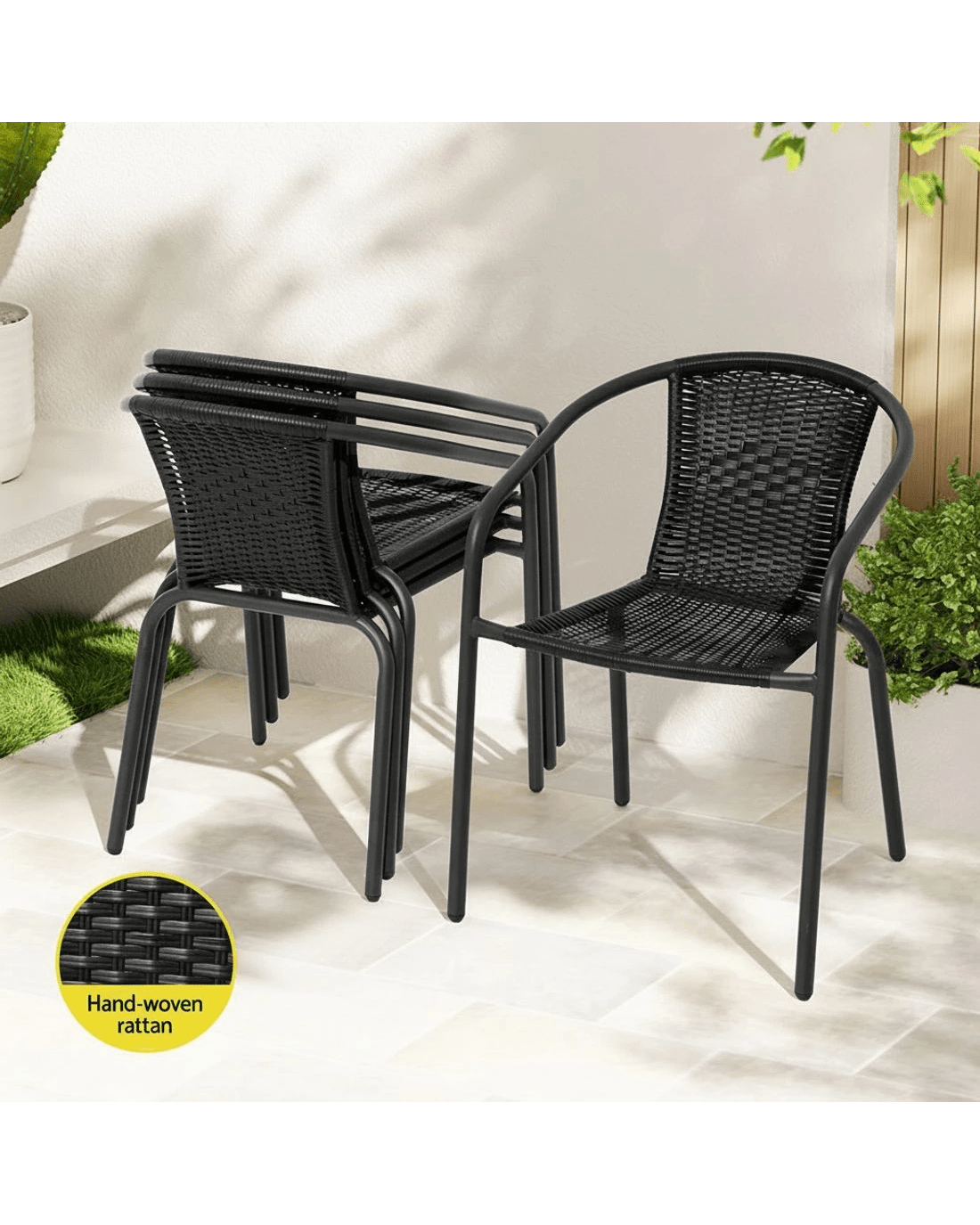 Gardeon Outdoor Dining Set 5 Piece Steel Stackable Chairs Table Patio - Black
