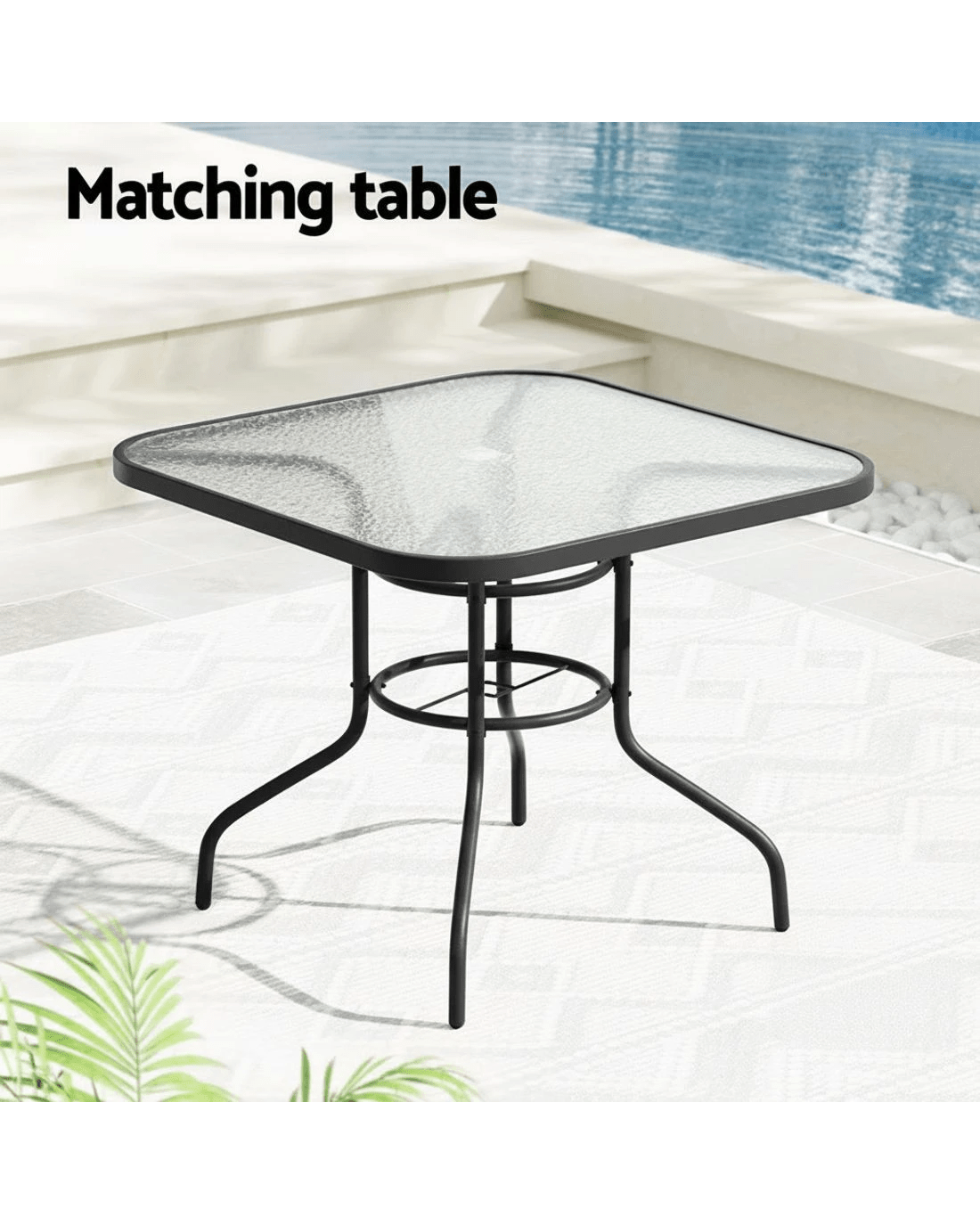 Elevate your dining experience with the Gardeon 5-Piece Outdoor Dining Set, featuring four single chairs and a matching dining table. Perfect for both indoor and outdoor settings, this set combines functionality with style. The stackable design makes storage simple, while the powder-coated finish and steel frame are built to be weather resistant. Experience stability with non-slip feet and enjoy easy maintenance thanks to the sleek, smooth surface.