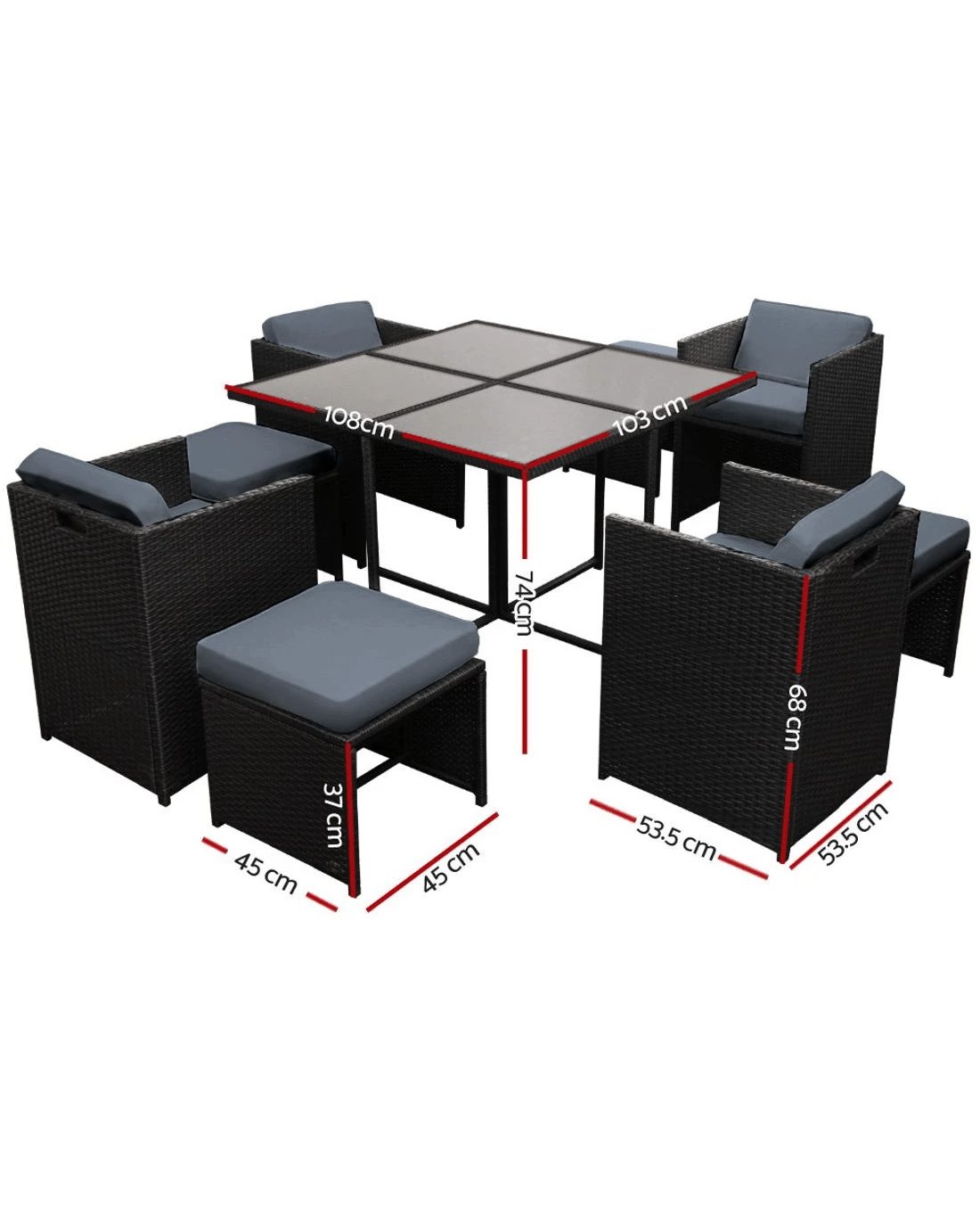 - 108cm x 108cm x 74cm
