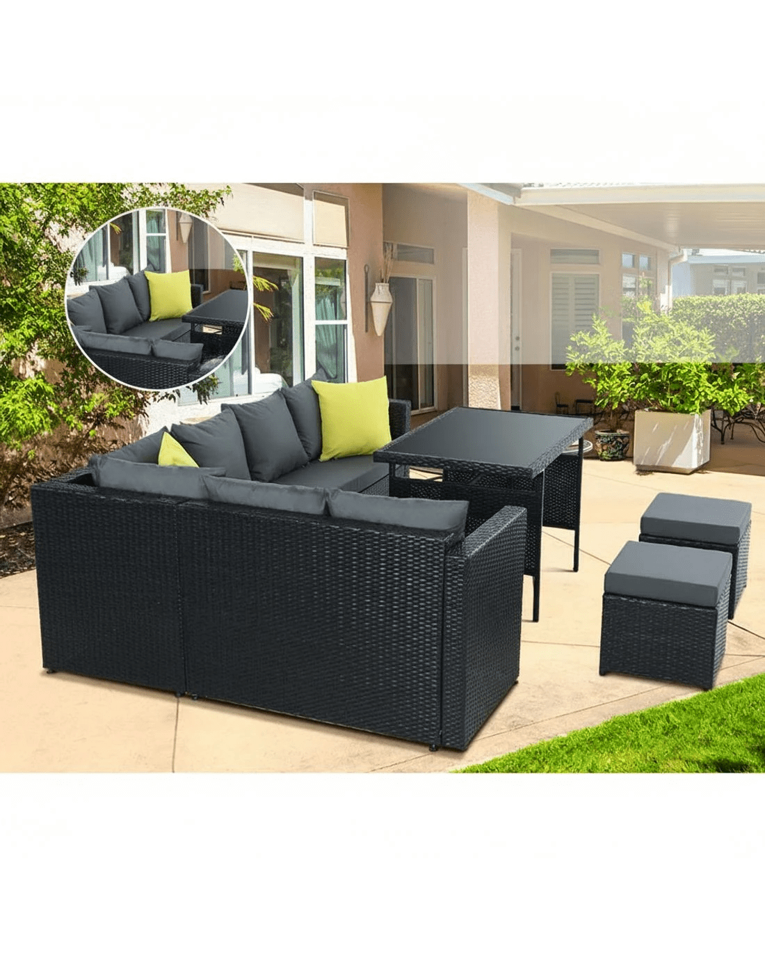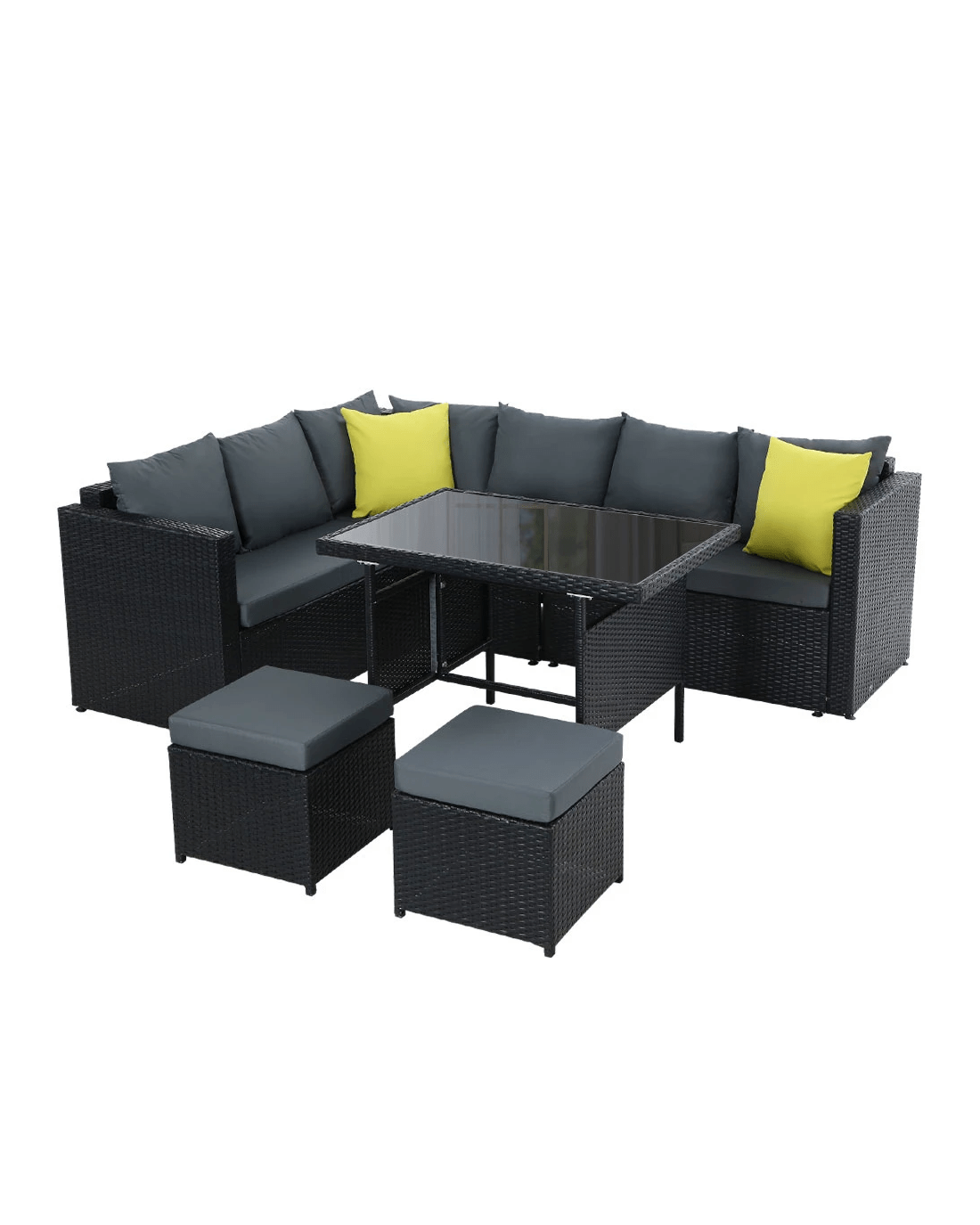 Invite your friends and family over for a garden party or just sit back and relax with our luxurious Gardeon Outdoor Sofa Dining Set. Being a multi-seater, the dining set provides enough room for all your guests to sit or for you to have a lie down and enjoy a book. You can arrange the seats (double seat, corner seat and ottoman) in various ways depending on your needs. The sofa is made of Aluminum frame with quality PE wicker finish that not only looks stylish but is perfect for outdoor use as it is both UV-resistant and weather-resistant. The seat cushions are 8cm thick to provide ultimate comfort and are water-resistant as well. The set also includes a matching table that has a 5mm thick tempered glass top with buffers for added protection.