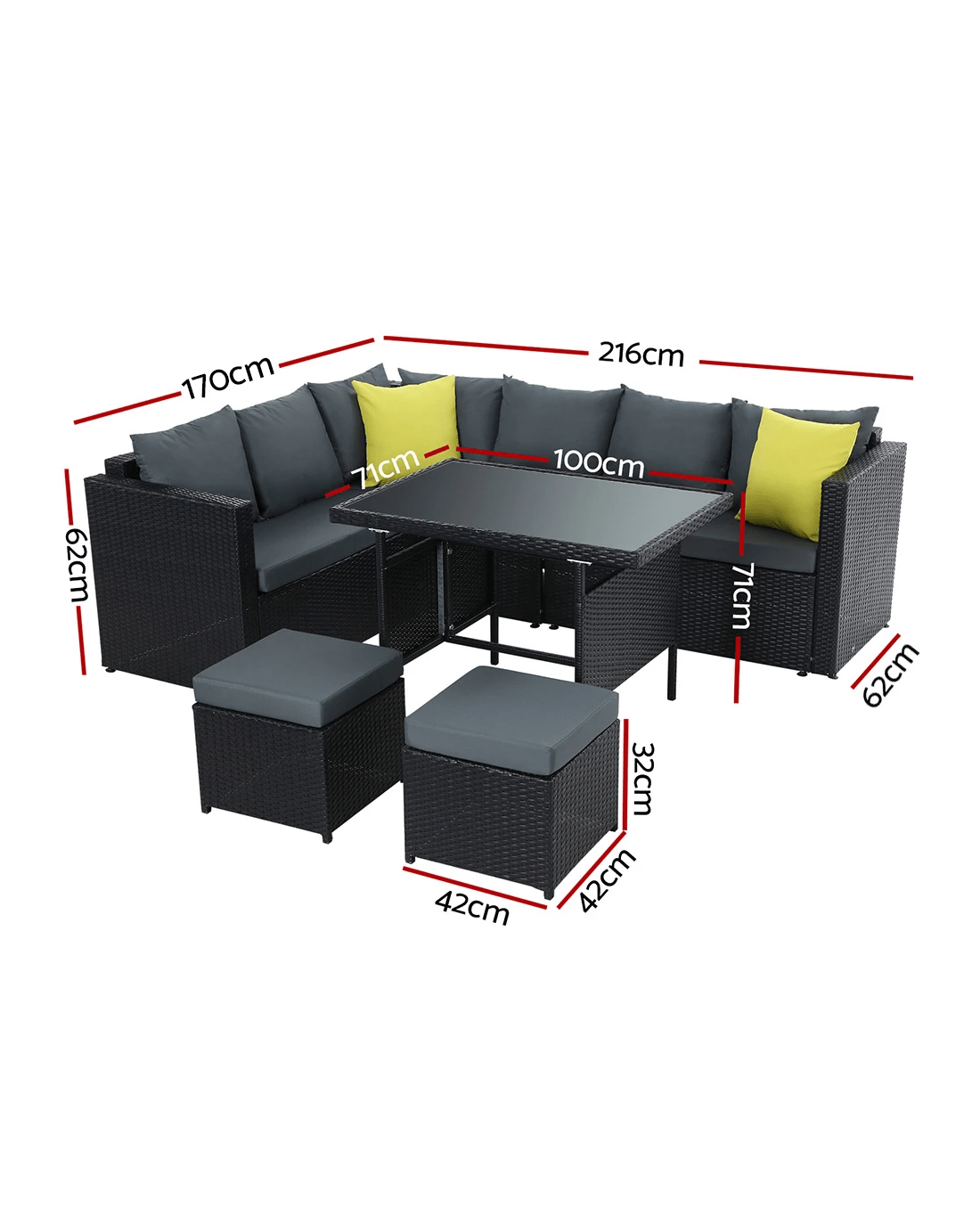 Ottoman: 42cm x 42cm x 32cm