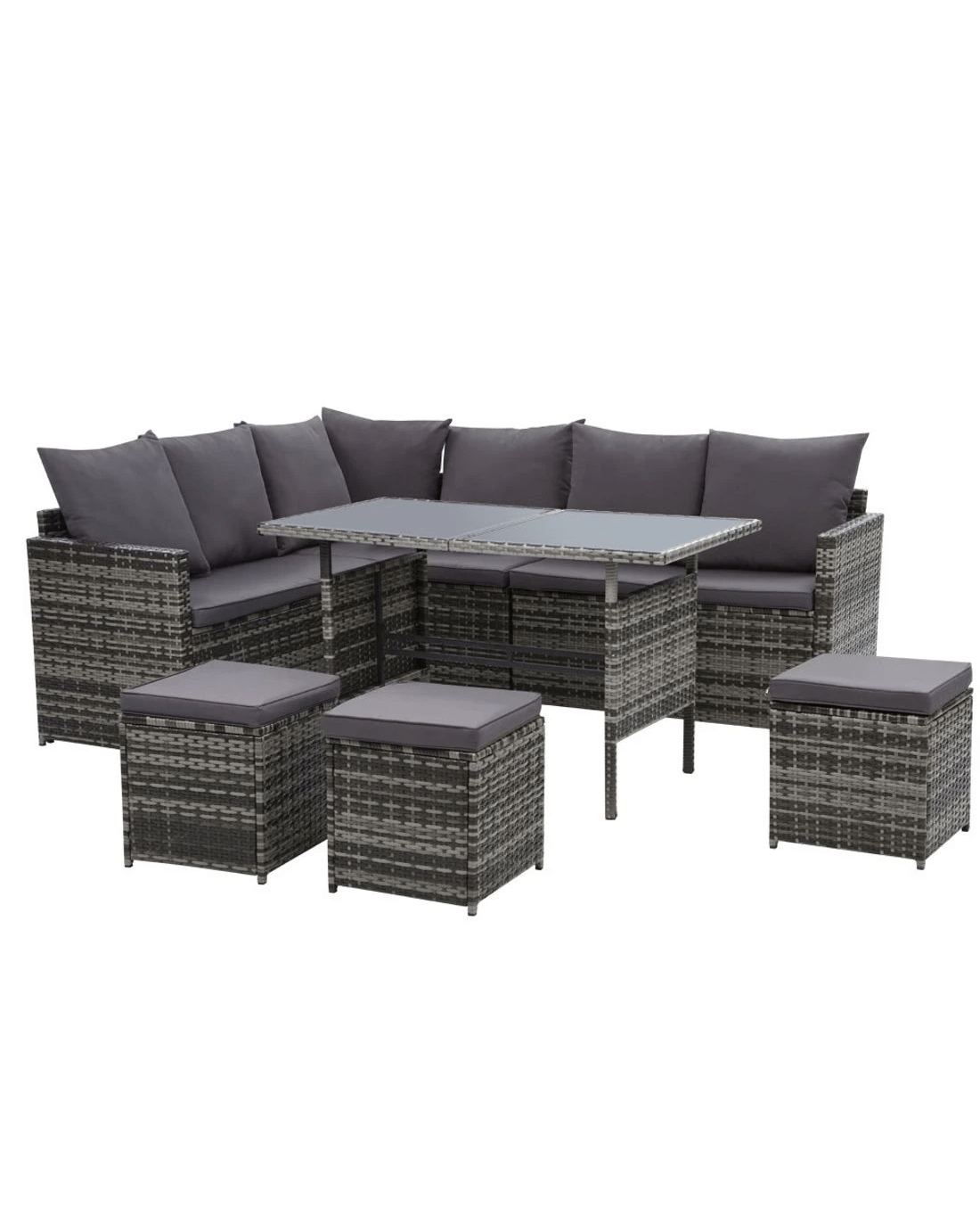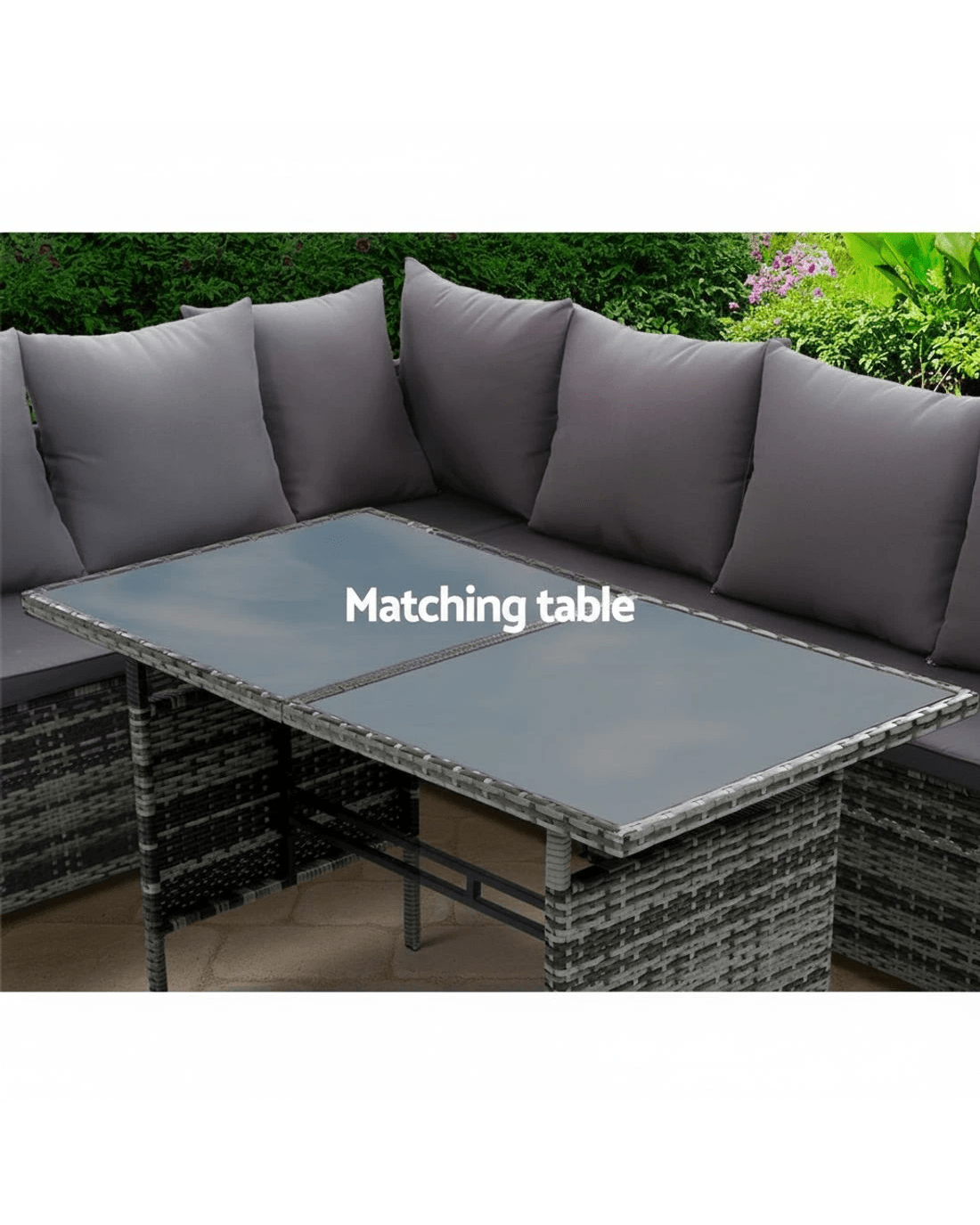 Invite your friends and family over for a garden party or just sit back and relax with our Gardeon Outdoor Sofa Dining Set. Being a 9-seater, the dining set provides enough room for all your guests to sit or for you to have a lie down and enjoy a book. You can arrange the seats in various ways depending on your needs and there are hooks included to secure the seats firmly together. The sofa is made of sturdy powder-coated steel frame with quality PE wicker finish that not only looks stylish but is perfect for outdoor use as it is both UV-resistant and weather-resistant. The cushions and pillows on the sofa provide ultimate comfort and are water-resistant as well. The set also includes a matching table that has a 5mm tempered glass top with buffers for added protection. Choose from four stylish models to suit your requirements in our store.