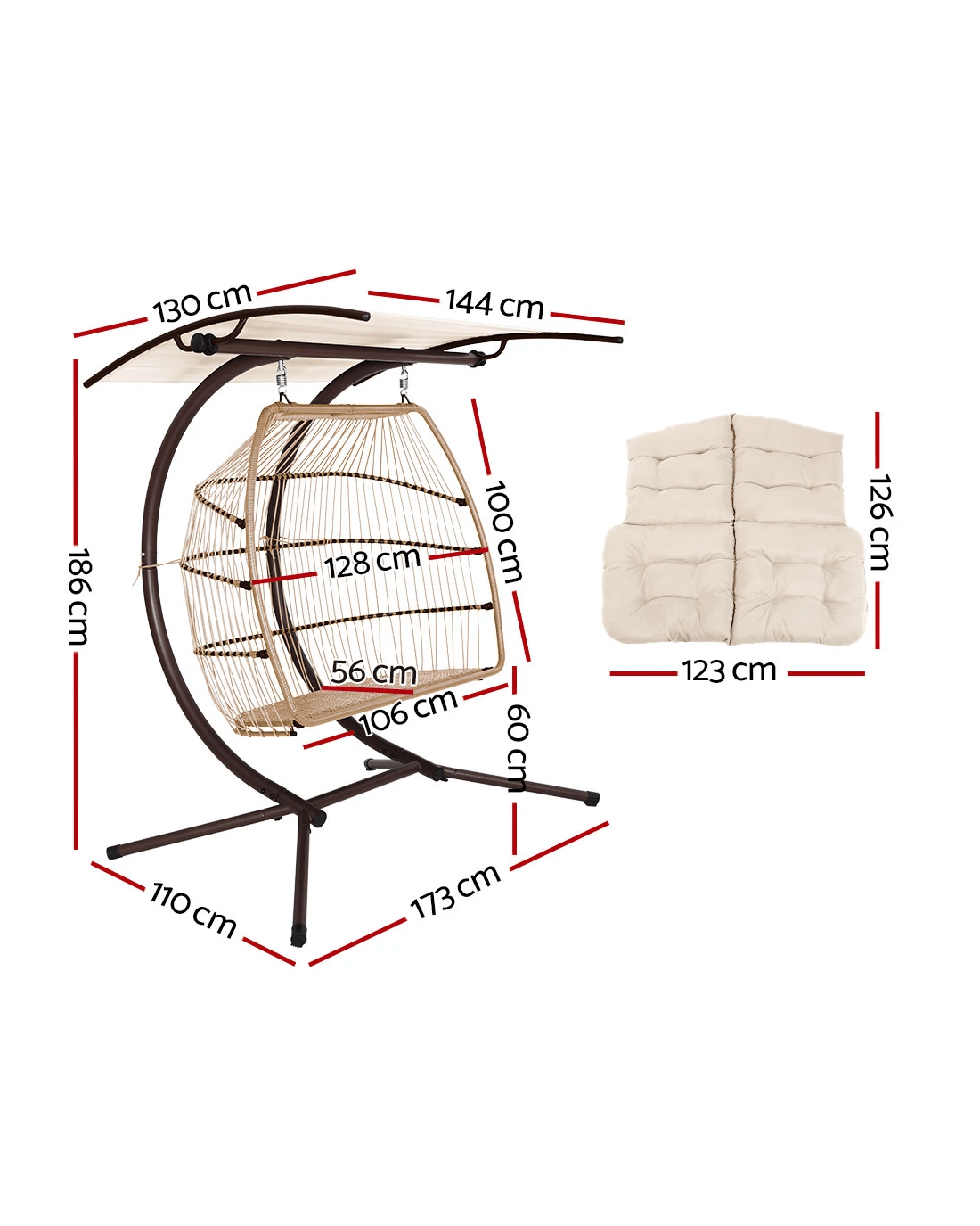 Gardeon Outdoor Egg Swing Chair Wicker Furniture Pod Stand Canopy 2 Seater - Beige