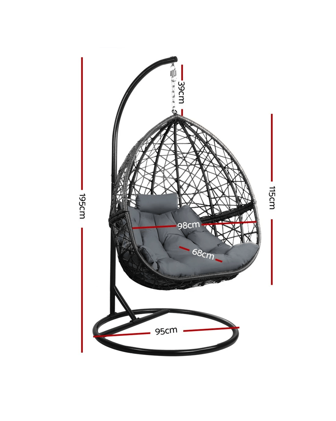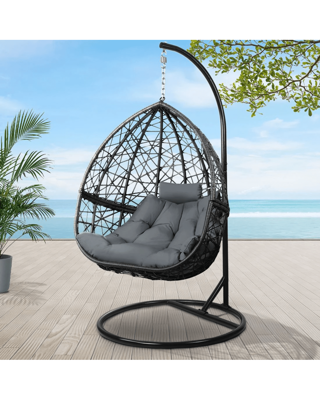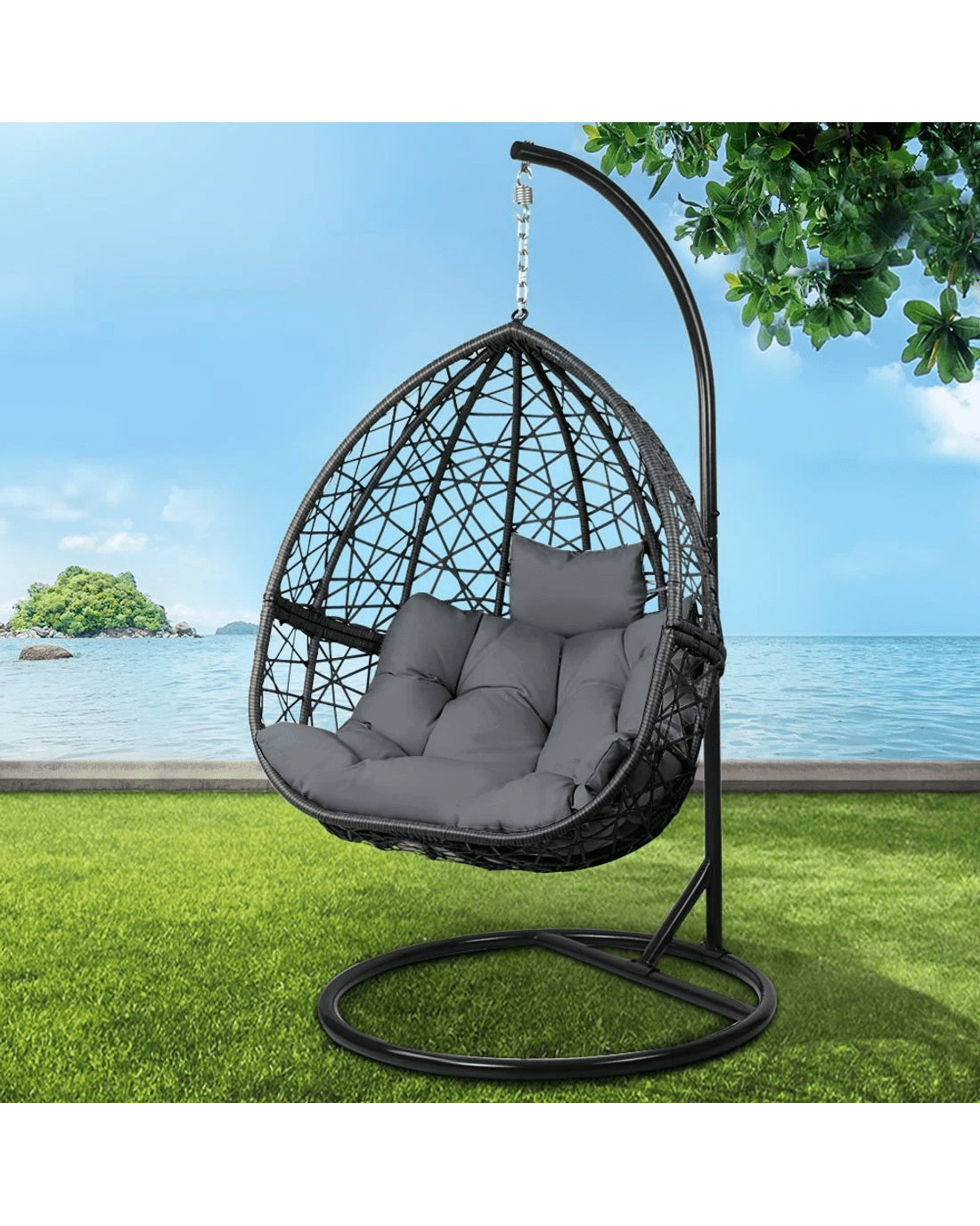 Gardeon Outdoor Egg Swing Chair Wicker Rattan Furniture Pod Stand Cushion - Multi