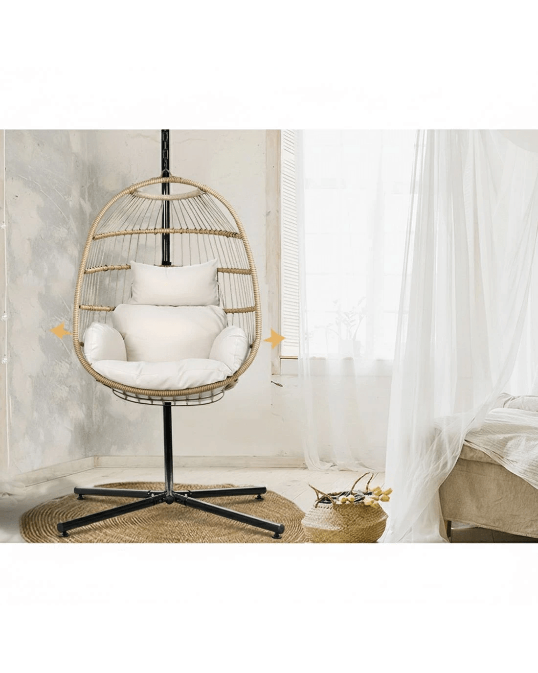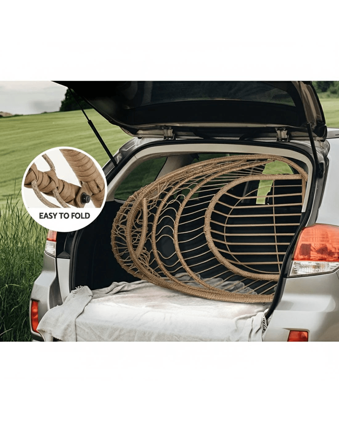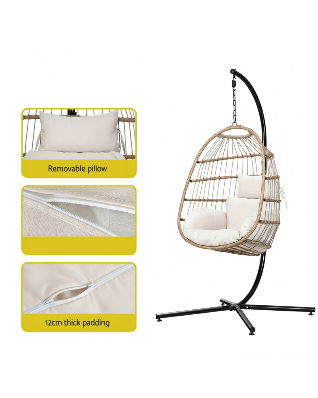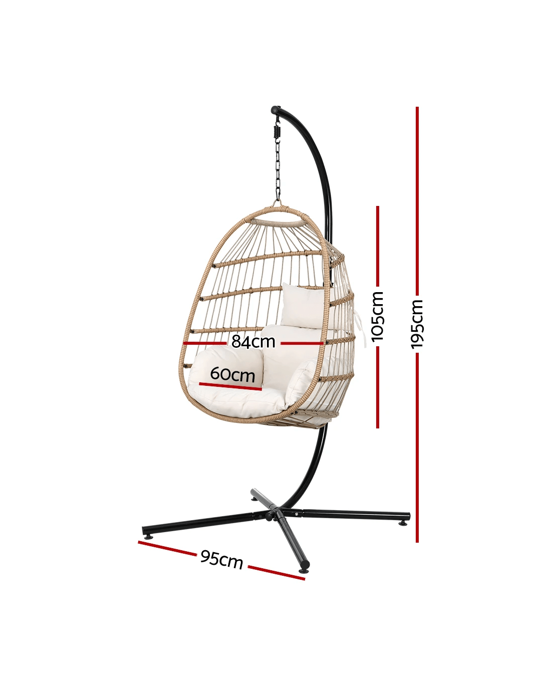 Gardeon Outdoor Egg Swing Chair Wicker Rope Furniture Pod Stand Foldable - Multi
