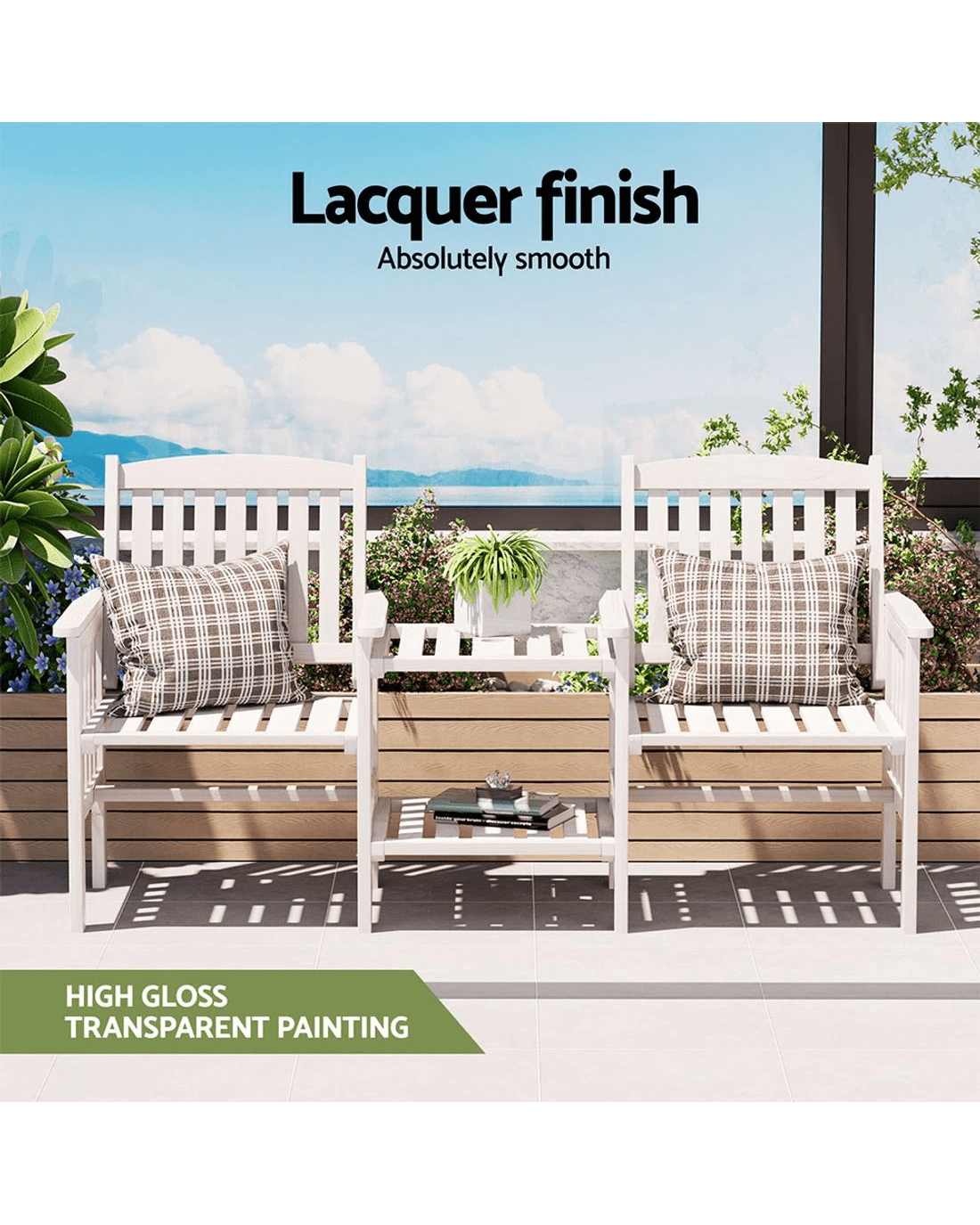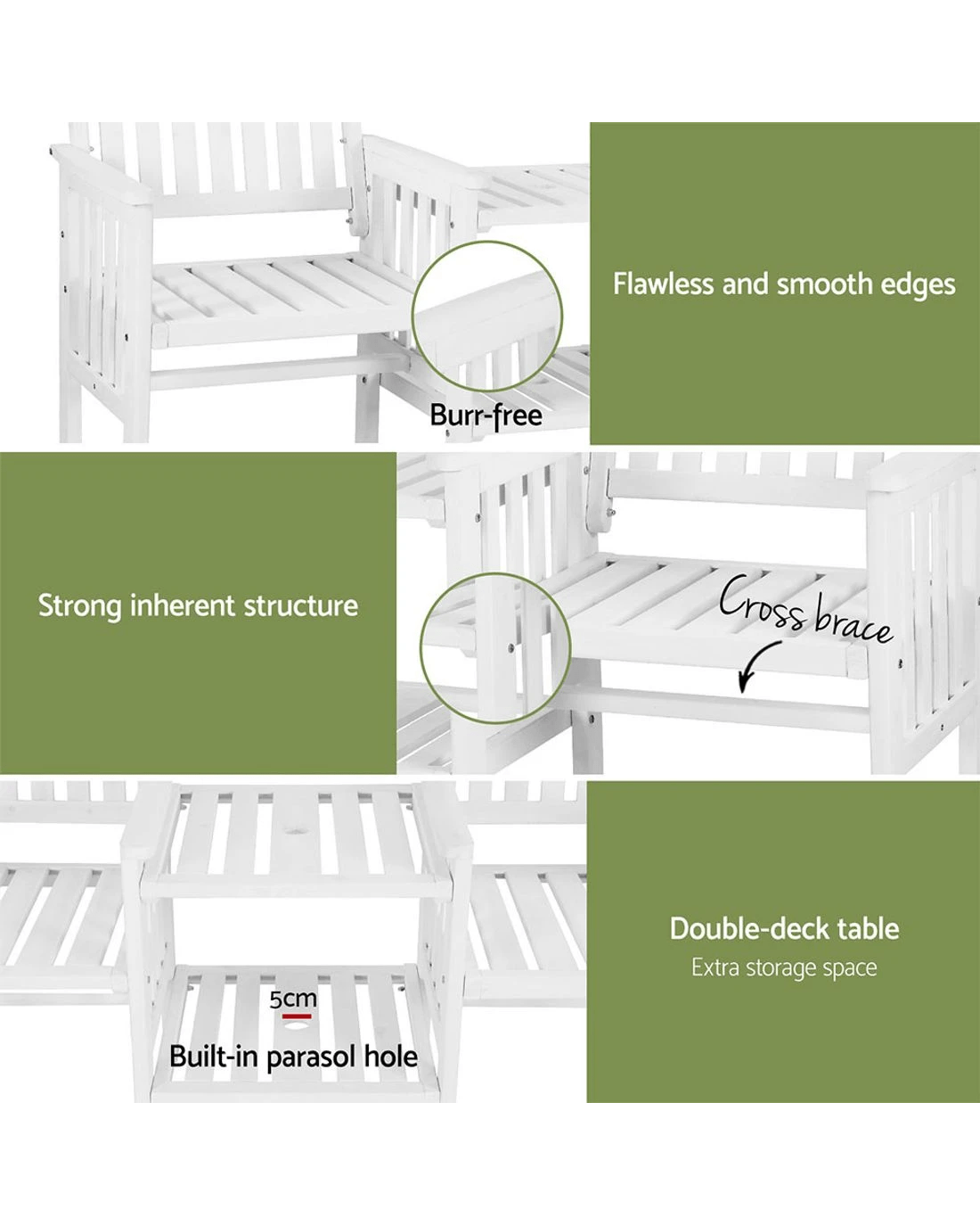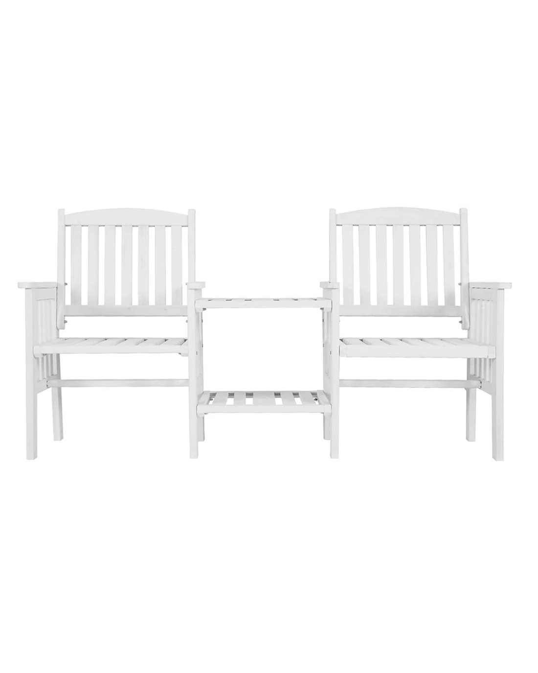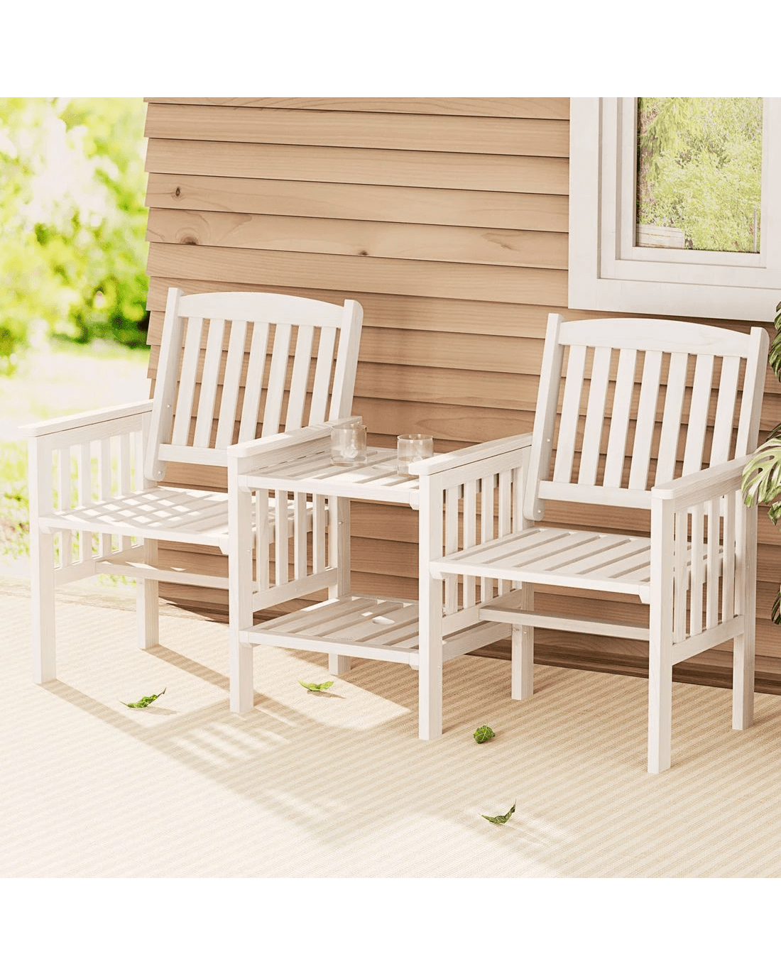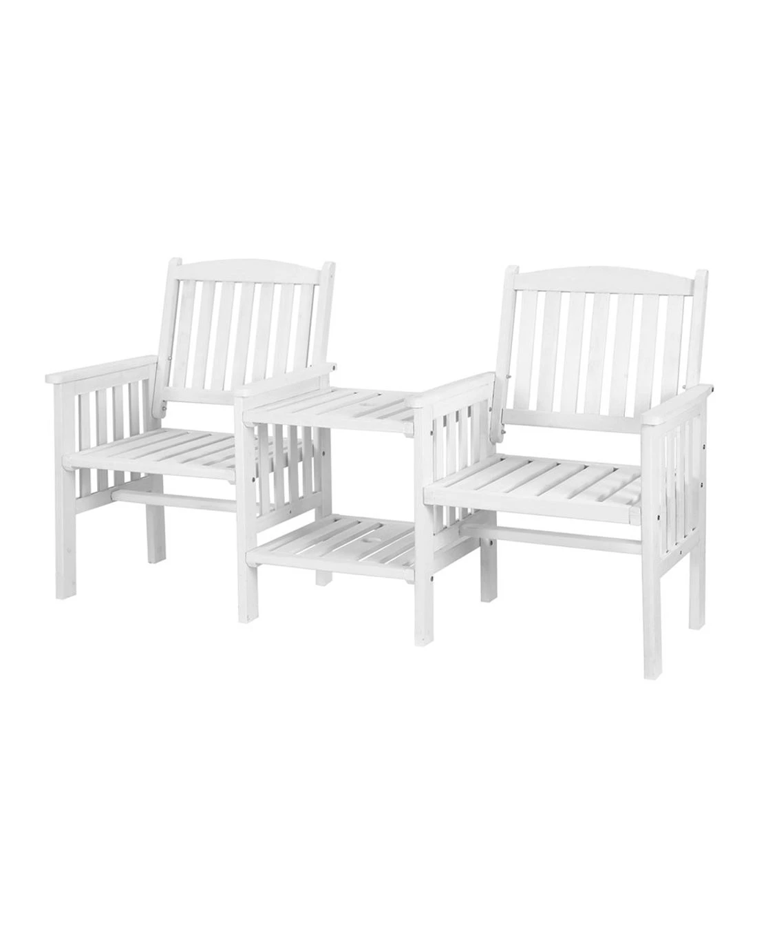 Gardeon Outdoor Garden Bench Loveseat Wooden Table Chairs Patio Furniture - White
