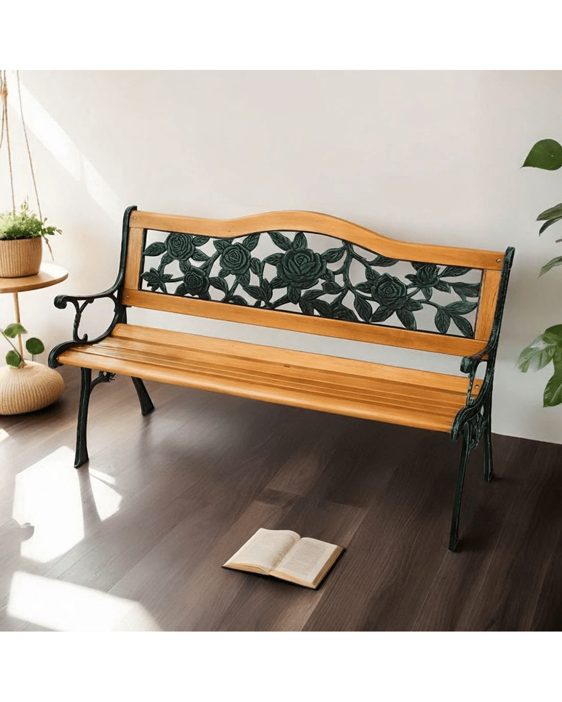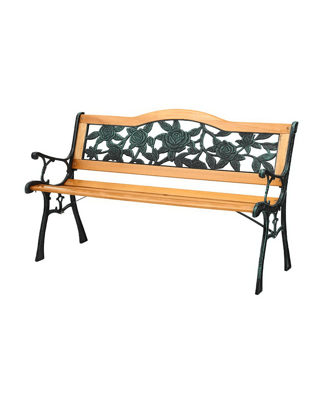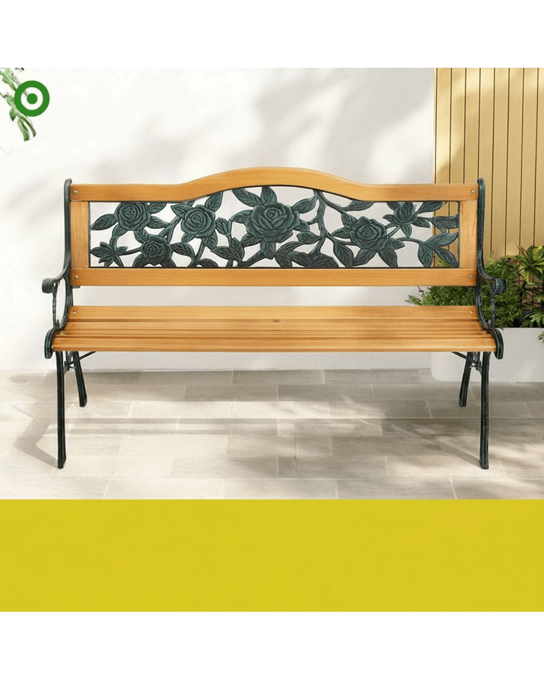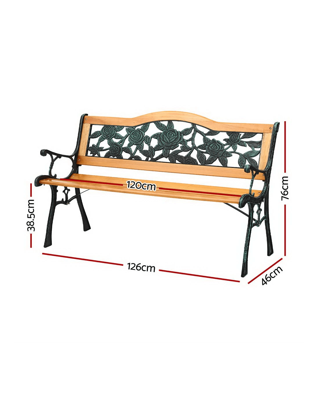 Gardeon Outdoor Garden Bench Seat 126cm Wooden Cast Iron 3 Seater Patio Furniture - Brown