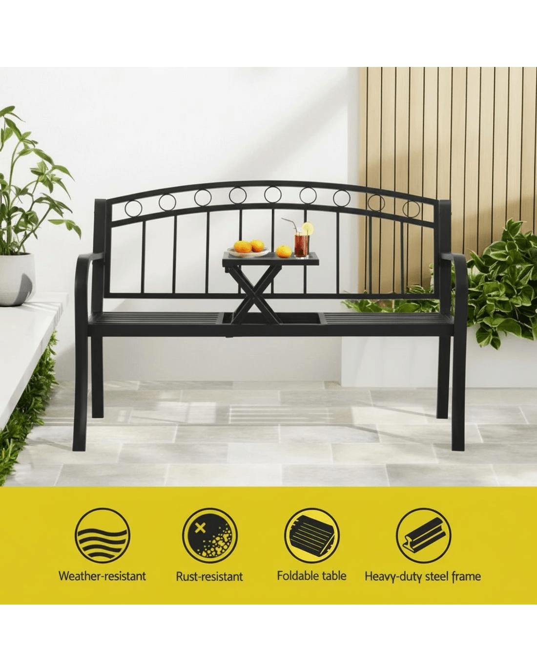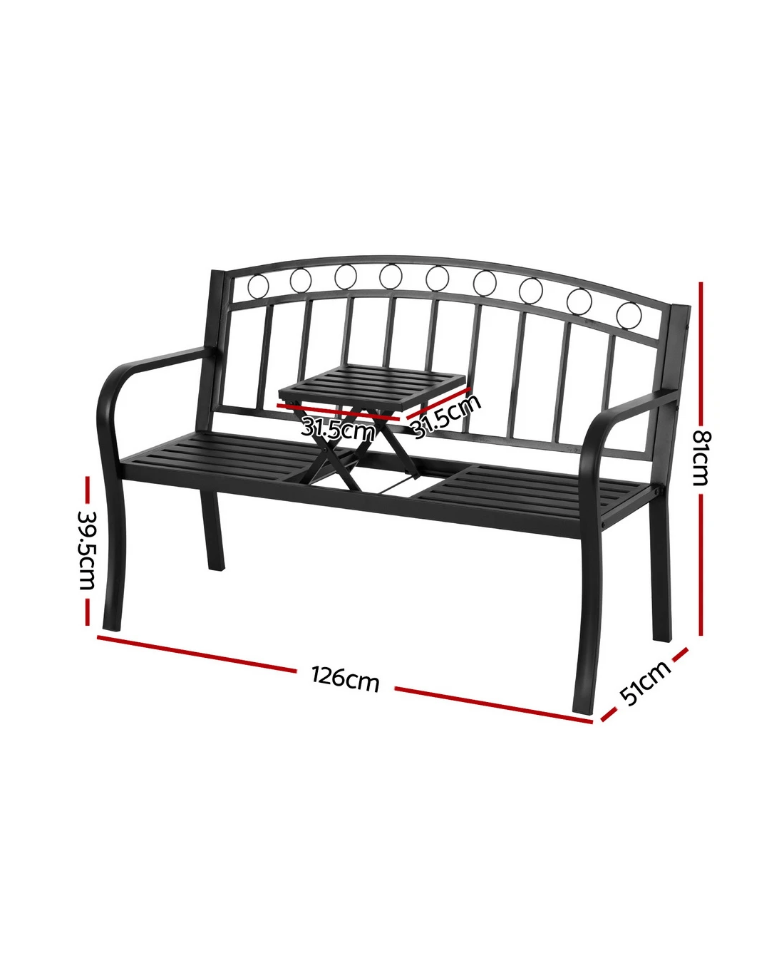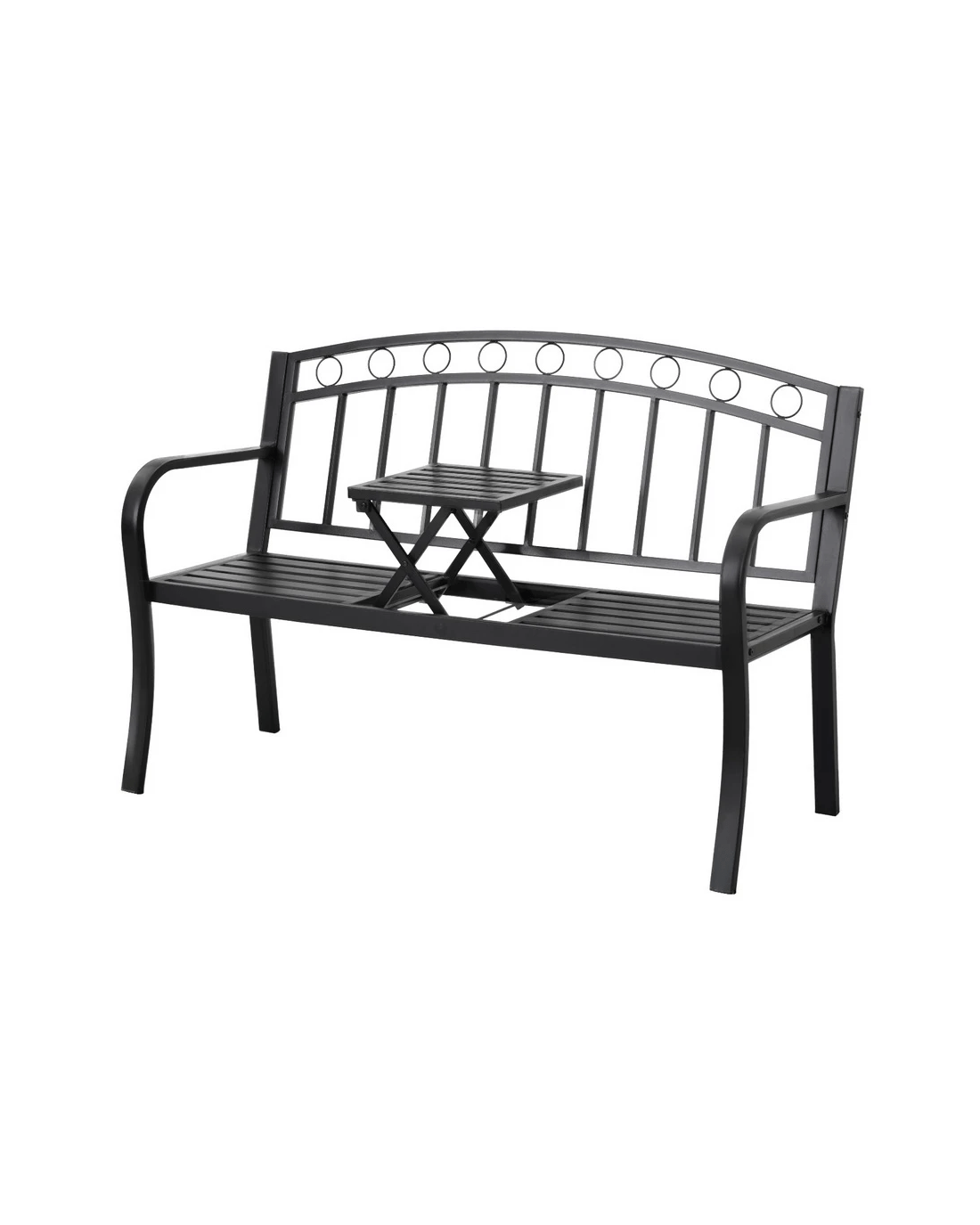 Gardeon Outdoor Garden Bench Seat Loveseat Steel Foldable Table Patio Furniture - Black