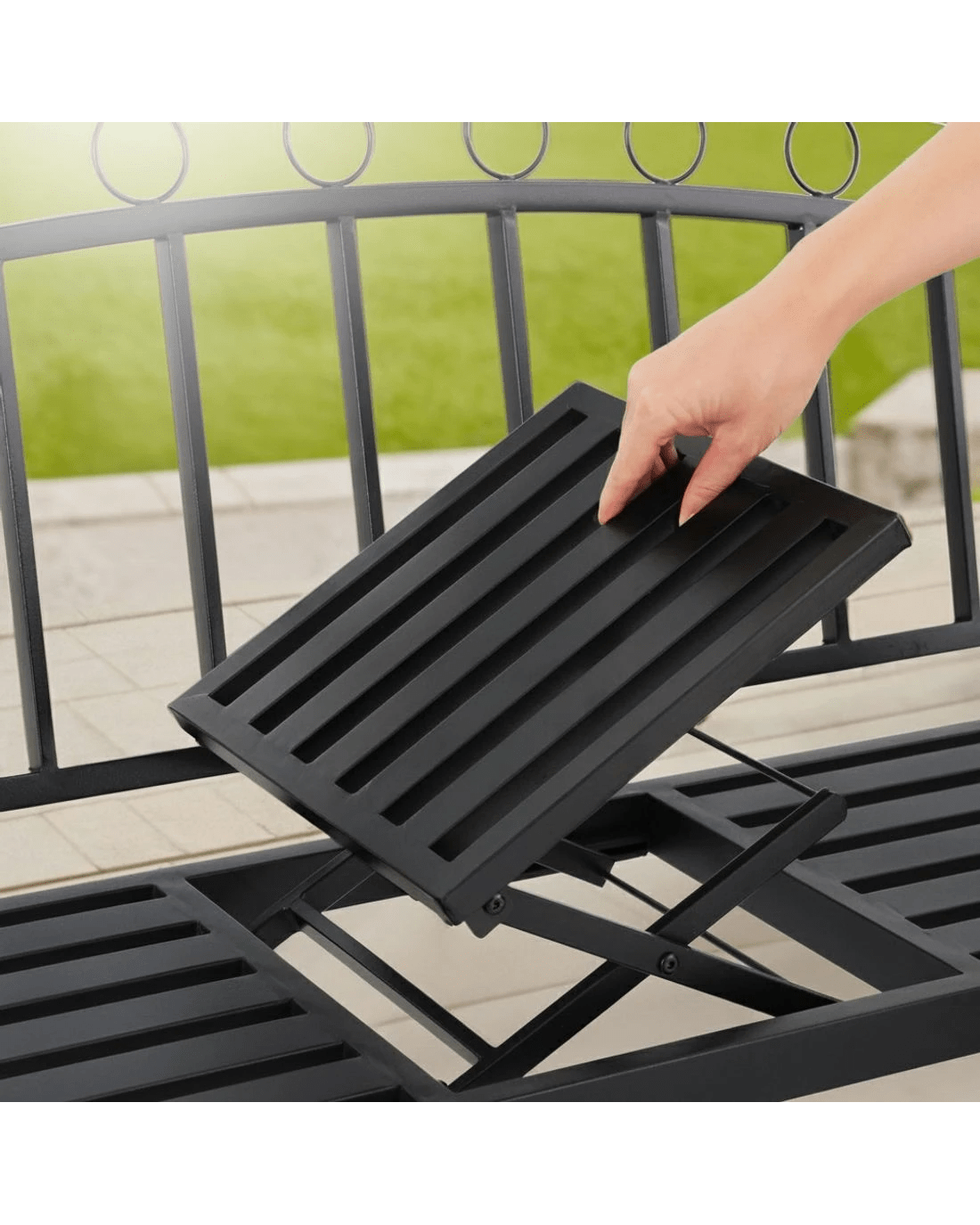 Experience the perfect blend of style and functionality with the Gardeon Multifunctional Garden Bench. This modern rustic outdoor seating solution boasts strong black steel construction, featuring an impeccable weather-resistant finish that ensures durability in various outdoor conditions. The bench's smooth, easy-to-clean surface and curved edges not only enhance its aesthetic appeal but also provide comfort for up to three people. The design includes a hidden center table that can be raised, transforming the three-seater into a cozy two-seater with a convenient surface for afternoon tea, drinks, or snacks.