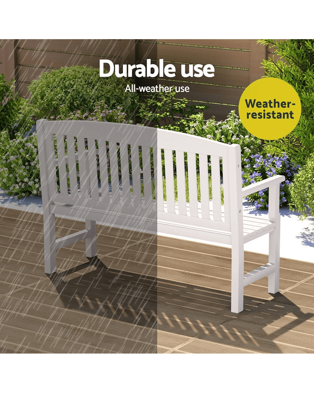 Want to create a beautiful outdoor space? Decorate and bring your outdoors to life with our gorgeously designed Gardeon outdoor benches. Add flower beds and some good lighting to create a dreamy outdoor ambience. Our outdoor garden bench is designed to impress. Featuring beautiful, handcrafted design with meticulous details, this garden bench is crafted from solid fir wood material and has solid structure for ultimate durability and longlasting use. It can hold up to 300kg and comes with water-based lacquer with high-gloss transparent paint for neat and well-finished look. Flaunting gorgeous wooden jali work, our garden bench has well-ventilated back that keeps you cool and sweat-free as you enjoy your great outdoors. It has strong fixings with steady legs for superb stability and steadiness. Furthermore, it has armrests to keep you comfortable, and the polished edges offers convenient and comfortable sitting. You can style this garden bench both indoors and outdoors. It's available in brown and white shade, giving you the flexibility to choose what best suits your space. Shop our Gorgeously built Gardeon outdoor bench today ro refresh your outdoors.