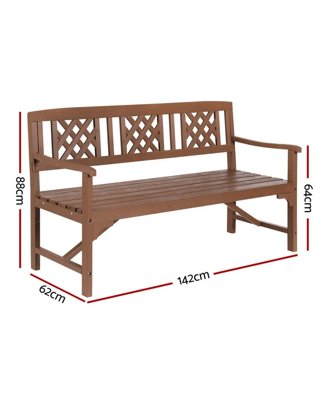 Gardeon Outdoor Garden Bench Wooden Chair 3 Seat Patio Furniture Lounge - Natural