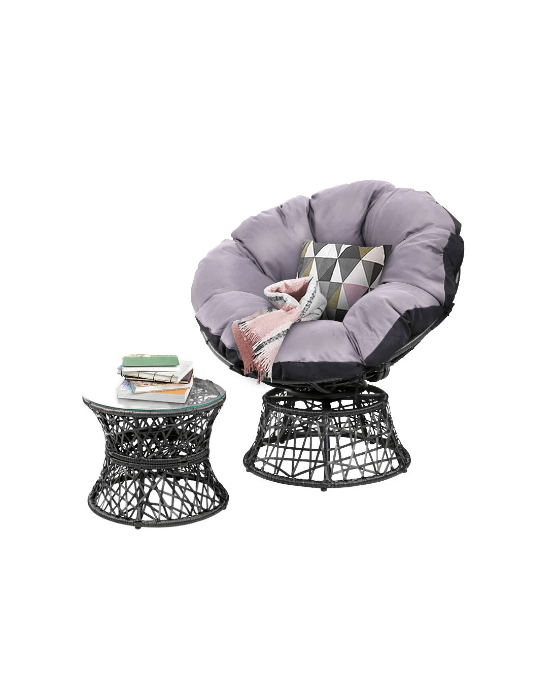 Gardeon Outdoor Lounge Setting Papasan Chair Wicker Table Garden Furniture - Black