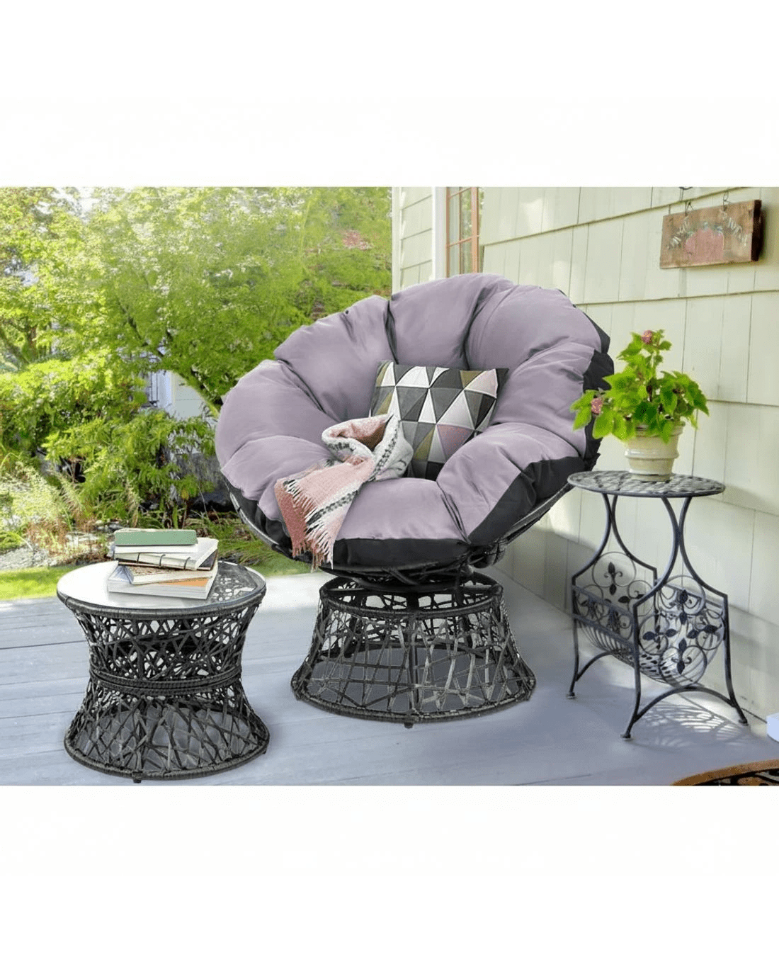 Indulge in pampered comfort with the Gardeon Papasan Chair and Side Table. A rotund PE-wicker chair that comes with a thick luscious 10cm padding that is perfect for use indoors or outdoors, summer or winter. With intricate wicker weaving around a durable steel frame, the Papasan Chair is meticulously crafted to bring out its unique style and strength. The chair can be rotated all round for easy facing in any direction. Not least, the covers are UV-resistant and removable for easy cleaning. And as a delightful matching piece to the chair, the wicker side table features the same wonderful attributes with a strong 5mm tempered glass top to add to its enchanting appeal.