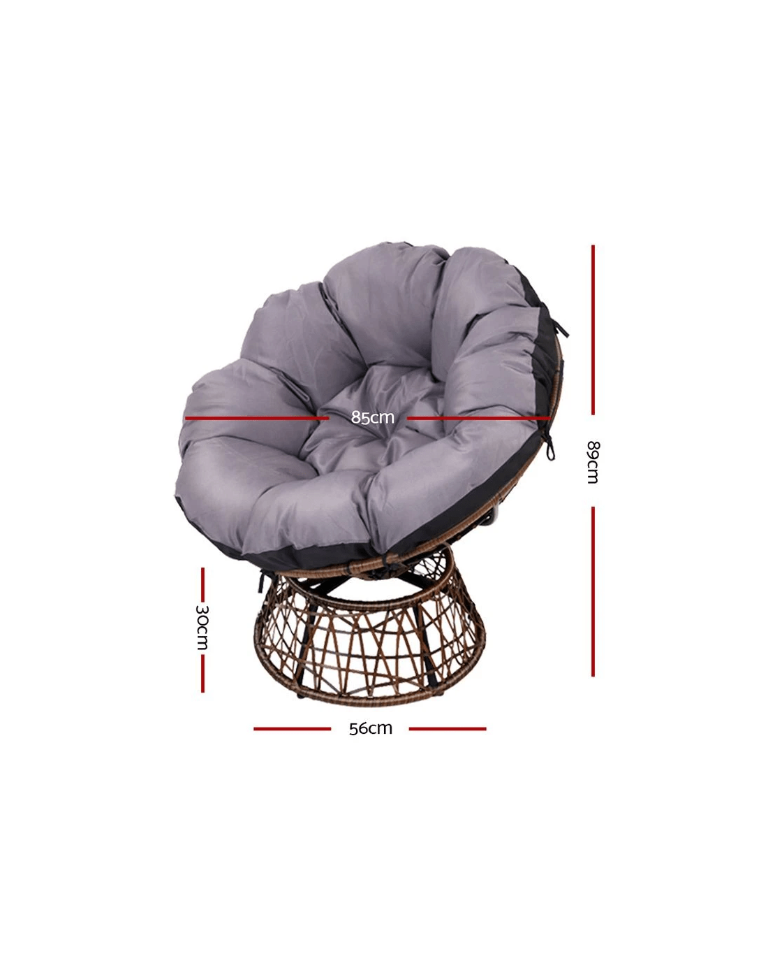 Gardeon Outdoor Lounge Setting Papasan Chair Wicker Table Garden Furniture - Brown