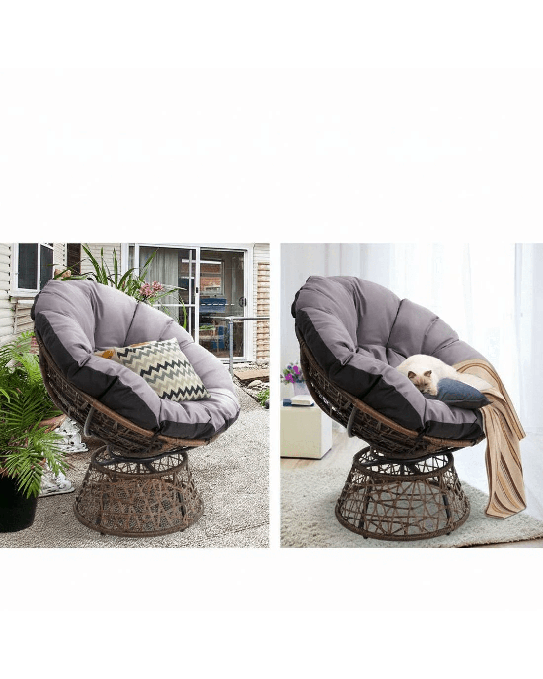 Indulge in pampered comfort with the Gardeon Papasan Chair and Side Table. A rotund PE-wicker chair that comes with a thick luscious 10cm padding that is perfect for use indoors or outdoors, summer or winter. With intricate wicker weaving around a durable steel frame, the Papasan Chair is meticulously crafted to bring out its unique style and strength. The chair can be rotated all round for easy facing in any direction. Not least, the covers are UV-resistant and removable for easy cleaning. And as a delightful matching piece to the chair, the wicker side table features the same wonderful attributes with a strong 5mm tempered glass top to add to its enchanting appeal.