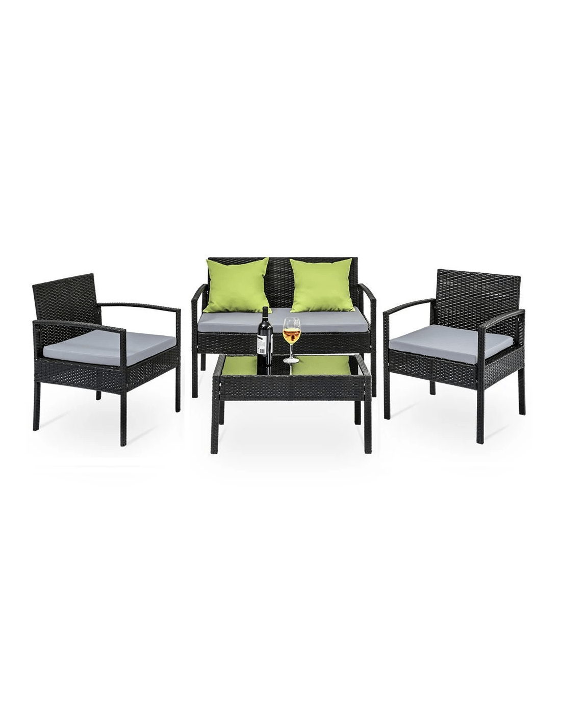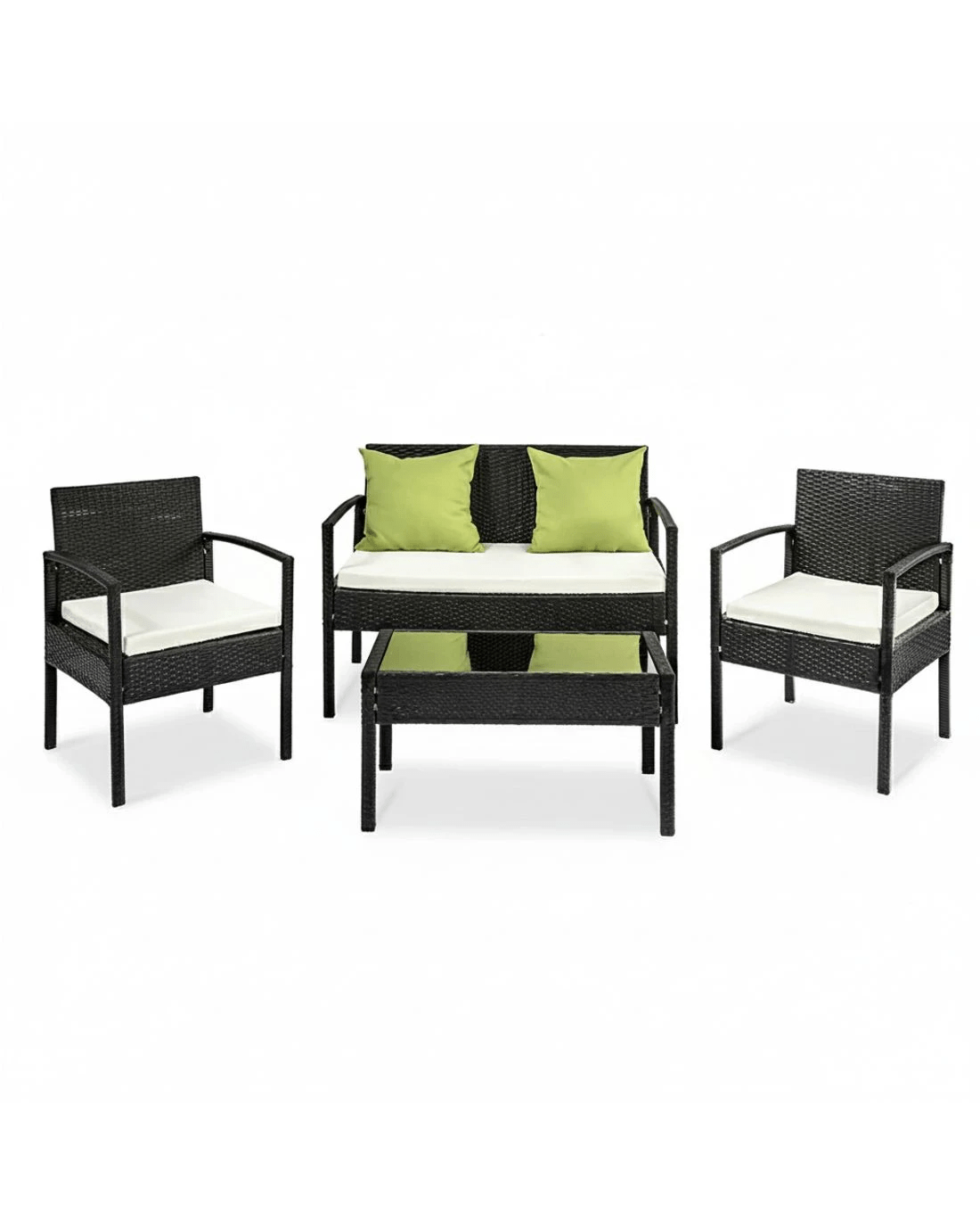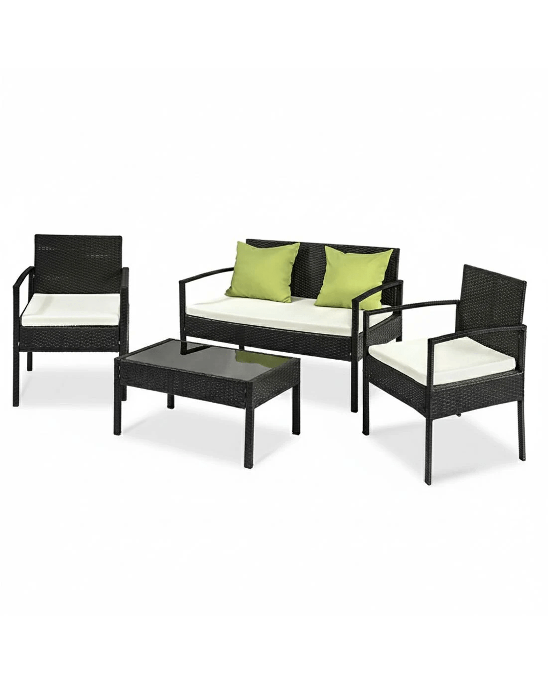 Time to give your backyard a complete make-over with our stylish yet affordable outdoor furniture set! It is made of aluminium frame and UV resistant PE wicker, together with amazing designs, you won't be disappointed with the quality. The set comes with a tempered glass top table along with seat cushions padded in high density foam that are removable and washable. Comes with an extra Beige colour cover set, you can easily change them whenever you need to wash another set. Strike your backyard with this beautiful 4 seater set and their lime green cushions!