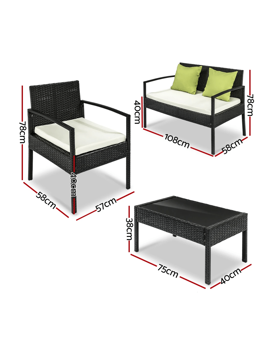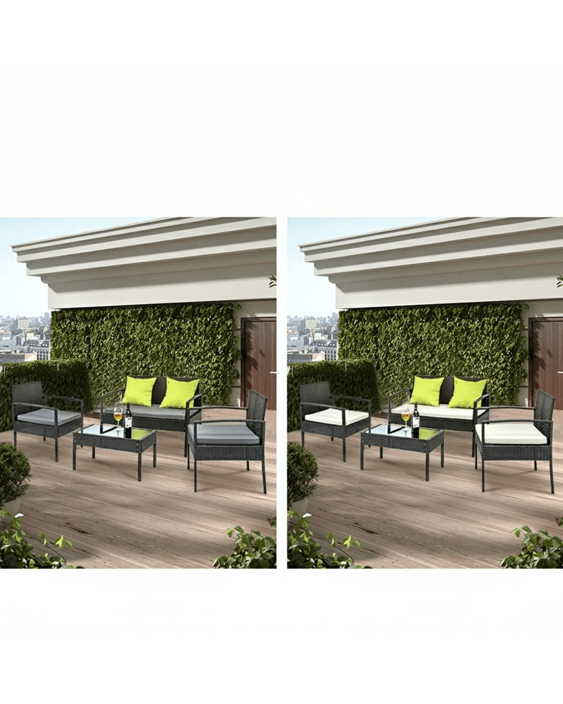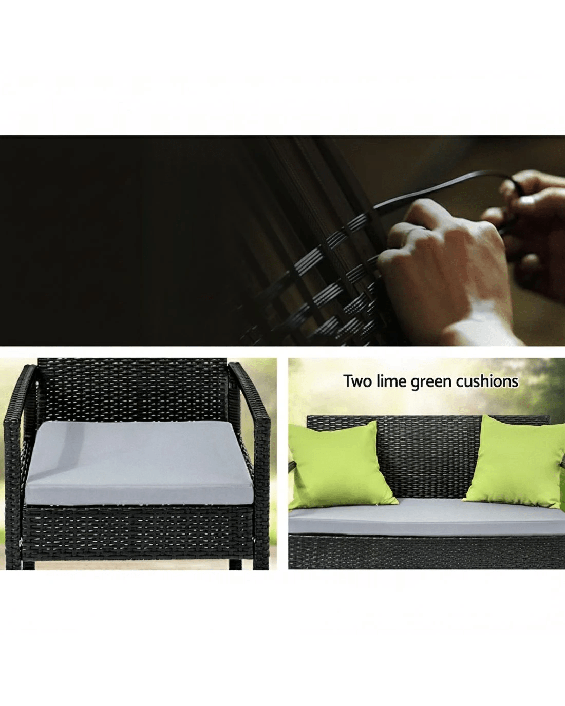 Time to give your backyard a complete make-over with our stylish yet affordable outdoor furniture set! It is made of aluminium frame and UV resistant PE wicker, together with amazing designs, you won't be disappointed with the quality. The set comes with a tempered glass top table along with seat cushions padded in high density foam that are removable and washable. Comes with an extra Beige colour cover set, you can easily change them whenever you need to wash another set. Strike your backyard with this beautiful 4 seater set and their lime green cushions!