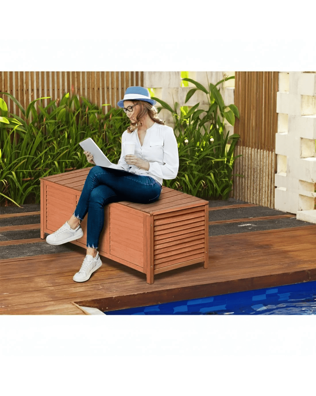 Gardeon Outdoor Storage Bench Box 210L Wooden Patio Furniture Garden Chair - Brown